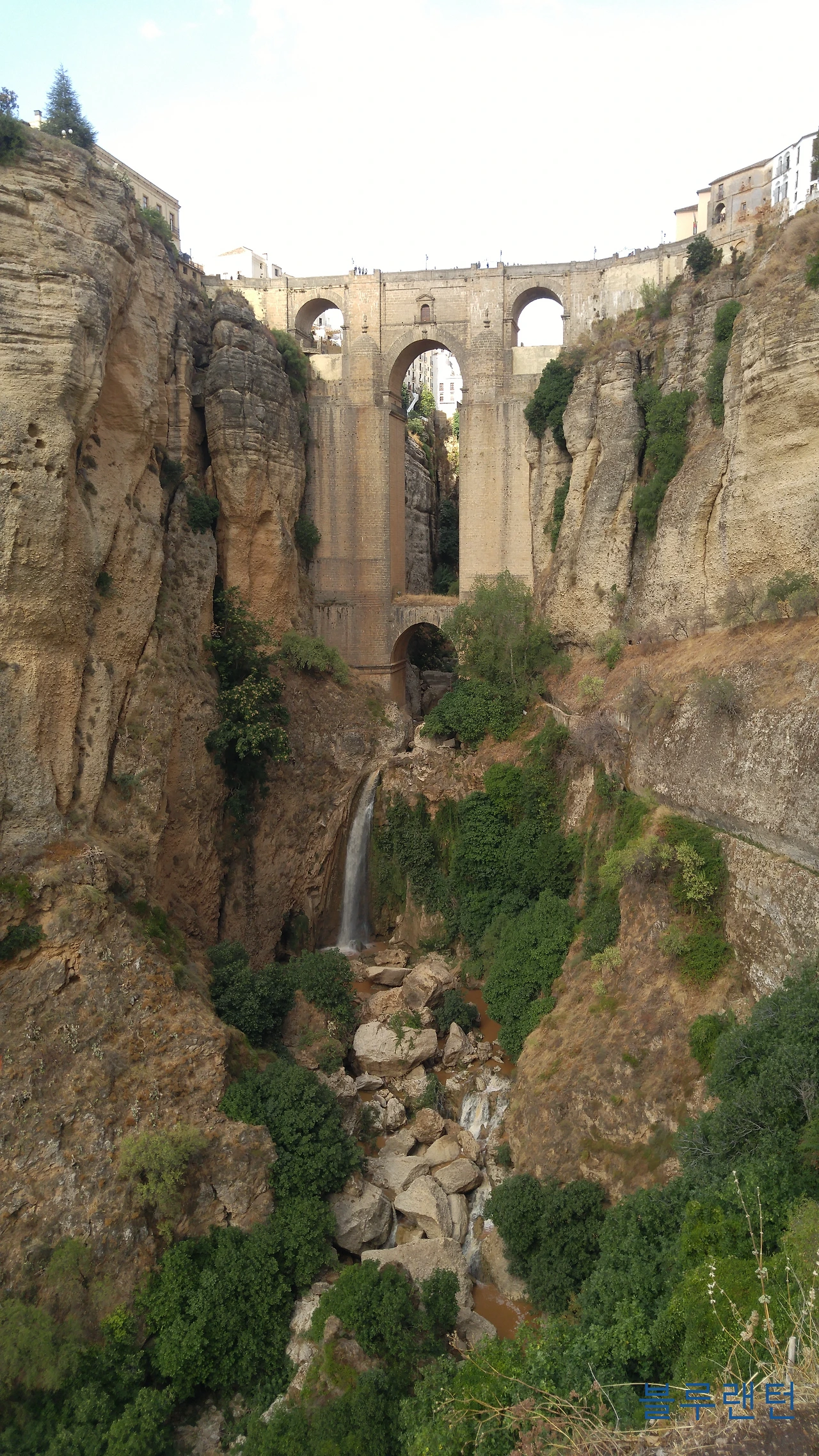 오랜 시간에 걸쳐 켜켜이 쌓인 바위층과 흙더미와 석회암이 만들어낸 주름이 협곡의 나이를 말해주고 있었다. 시에라(Sierra) 산에서부터 시작하는 구아달레빈 강은 수량이 적어 계곡물줄기처럼 가늘어 보이지만 세라니아와 론다 두 도시의 구릉지역에 수분을 공급해 주는 명실상부한 젖줄이다.