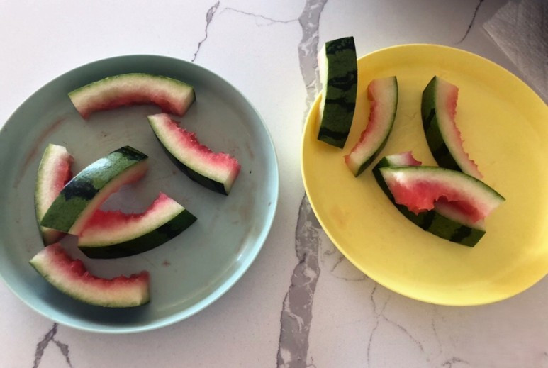 한 접시 먹고, 또 한 접시 먹고, 아무리 미니 수박이라지만 네 살배기 손자 혼자서 수박 반 통을 금세 먹어치웠다. 제 철이 아니라서 어떨까 싶었는데 여름 수박만큼이나 맛있긴 하다.