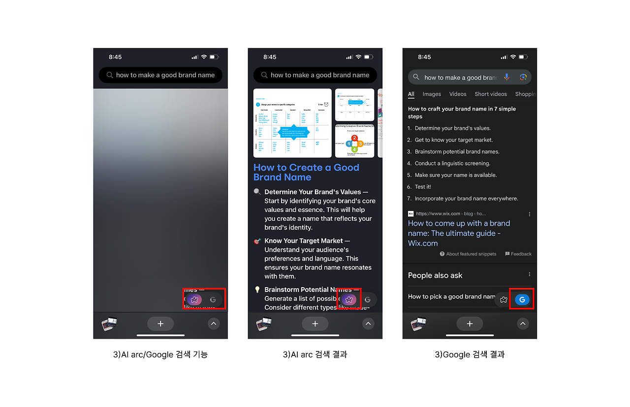 하나의 입력값으로 Ai arc와 Google 검색 기능을 선택하여 2가지 형태의 정보를 얻을 수 있고, 따로 chat GPT를 검색해서 사용할 필요 없이 Ai를 쉽게 접할 수 있어 편리하다.