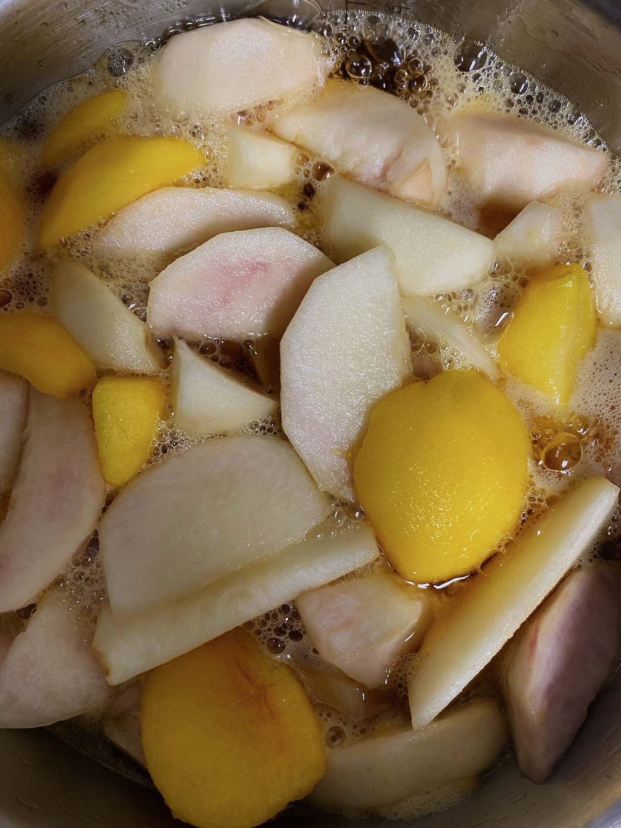 후숙을 위해 베란다에도 내놨다, 식탁 위로 옮겼다, 그래도 여름인데 시원한 게 제일이지 냉장고에 넣어놨다 나름 당도 상승을 위해 별짓을 다 했건만, 단맛은 커녕 마이너스 당도가 의심되는 복숭아들을 째려보기만 하다 오늘 결국 황설탕 잔뜩 녹인 펄펄 끓는 이벤트탕으로 몰아넣었다.