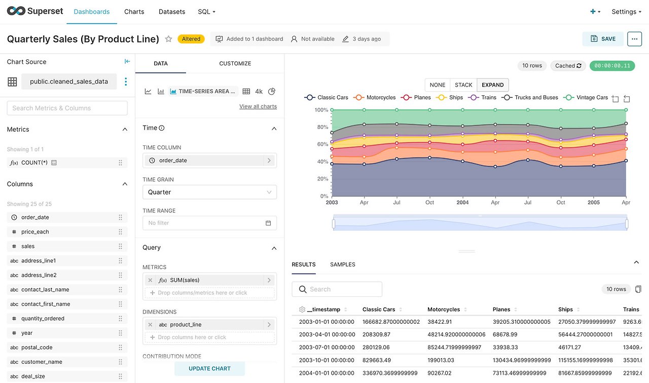 Superset은 데이터 시각화, 대시보드 및 데이터 탐색을 위한 다양한 기능과 기능적인 다양성, 상호작용성, 대화형 데이터 탐색, 데이터 추출 등을 제공한다. Python 기반으로 개발되었으며, SQL 기반의 다양한 데이터 소스를 지원한다. 다양한 데이터 소스와 연결할 수 있는 확장성과 유연성을 가지고 있으며 사용자 친화적인 UI/UX를 갖추고 있어 데이터를 쉽게 시각화하고 분석할 수 있다.