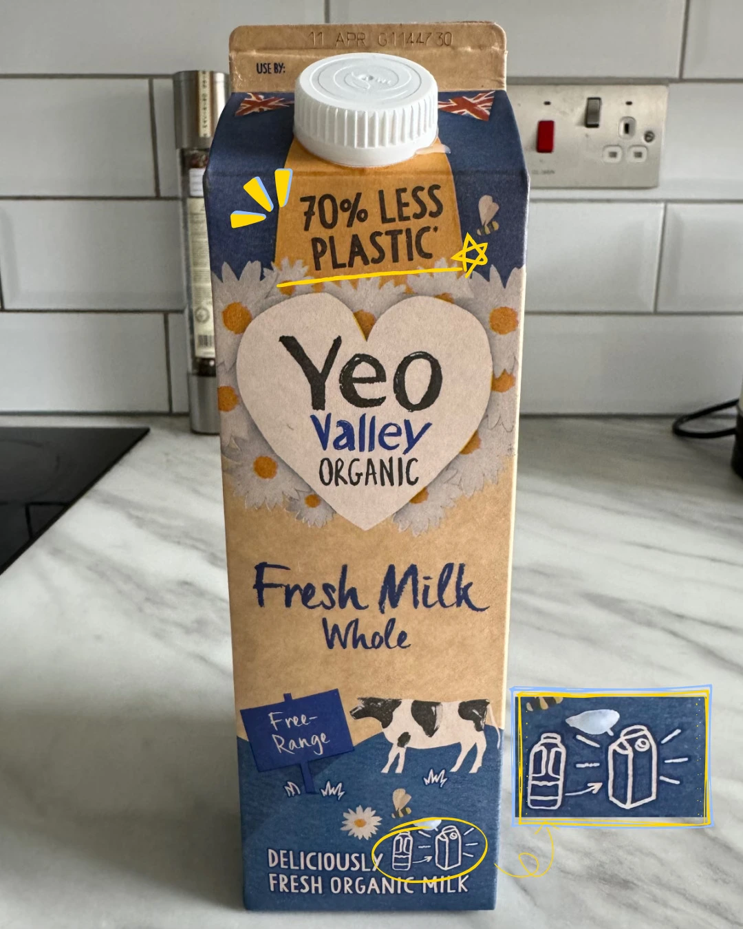 제품 패키징에서도 소비자가 친환경 제품을 구매할 수 있도록 하는 아이디어들이 돋보였다. 내가 산 우유는 종이로 되어 있어서 이 제품을 구매하면 기존 플라스틱 케이스 제품보다 70%의 플라스틱을 감소할 수 있다고 소비자에게 정보를 주고 있다. 내가 하는 작은 행동이 환경에 얼마큼의 영향을 미칠 수 있는지 직관적으로 정보를 전달한다. 디자인도 예쁘고 가격 경쟁력도 있어서 오늘의 우유 원픽이다!