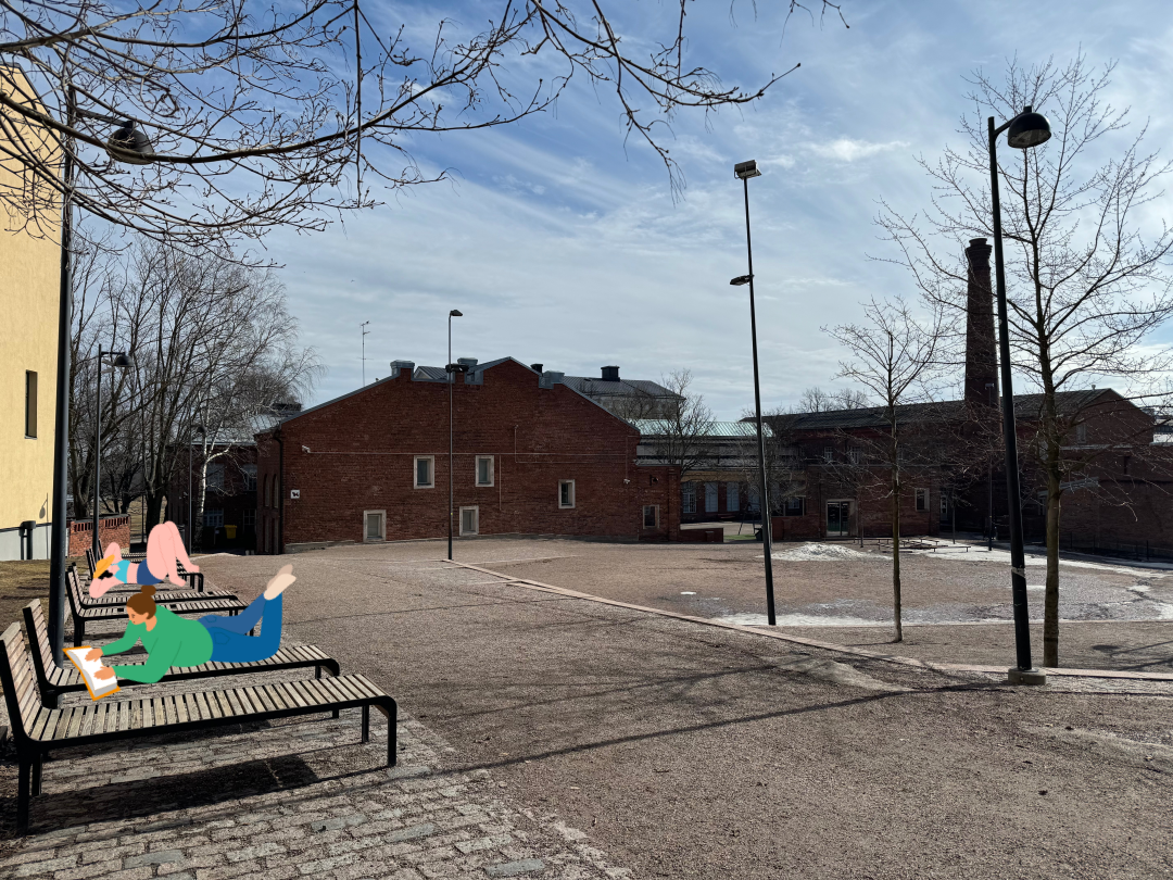 주거지역을 거닐다 마주친 작은 공터. 공놀이를 할 수 있는 공간과 한쪽에는 누울 수 있는 벤치가 있다. 아이들은 공놀이를 하고, 어른들은 누워서 책을 읽는 걸까? 앉을 수도, 누울 수도 있게 디자인된 벤치가 우리 동네 공원에도 있으면 좋겠다는 생각을 해 본다.