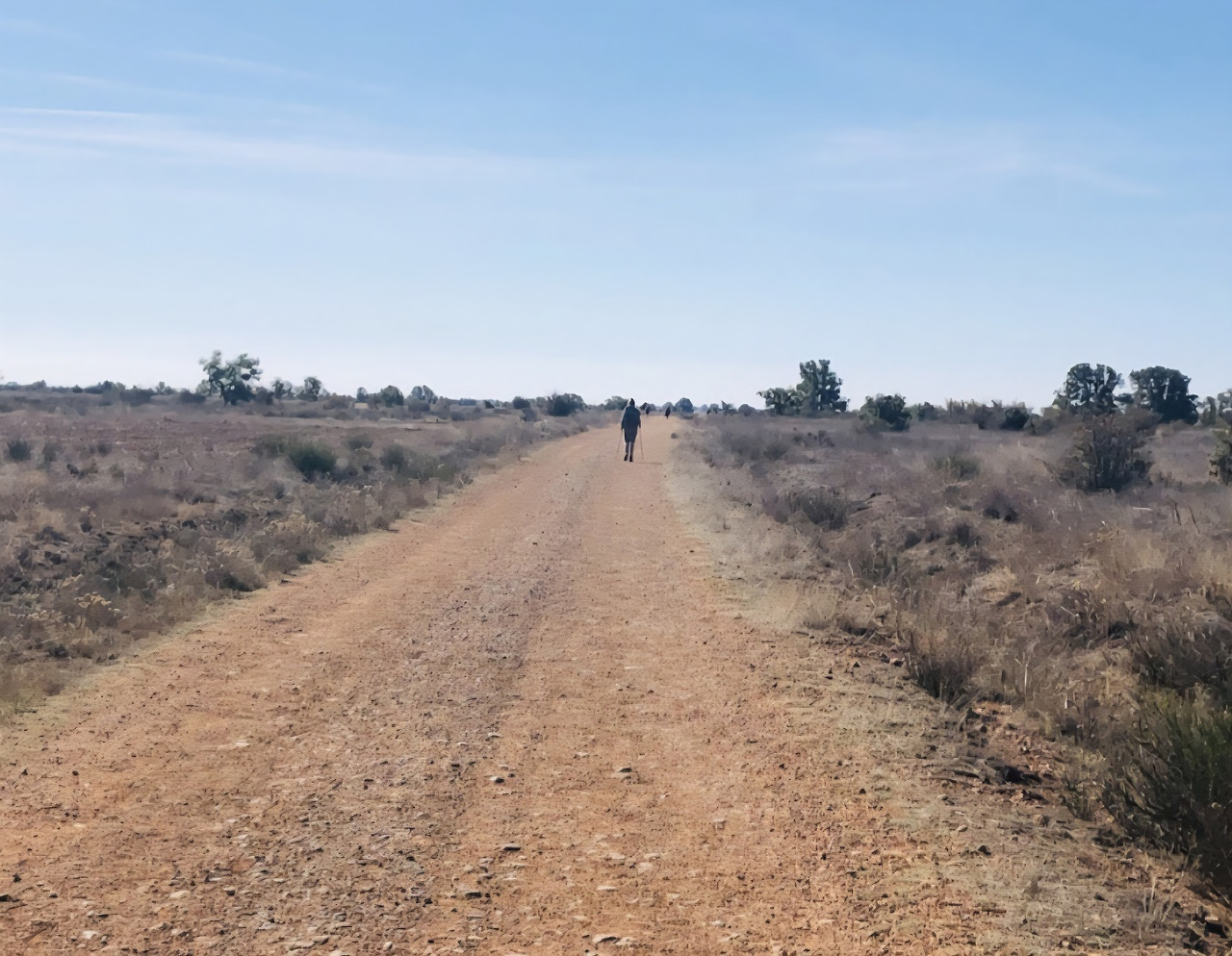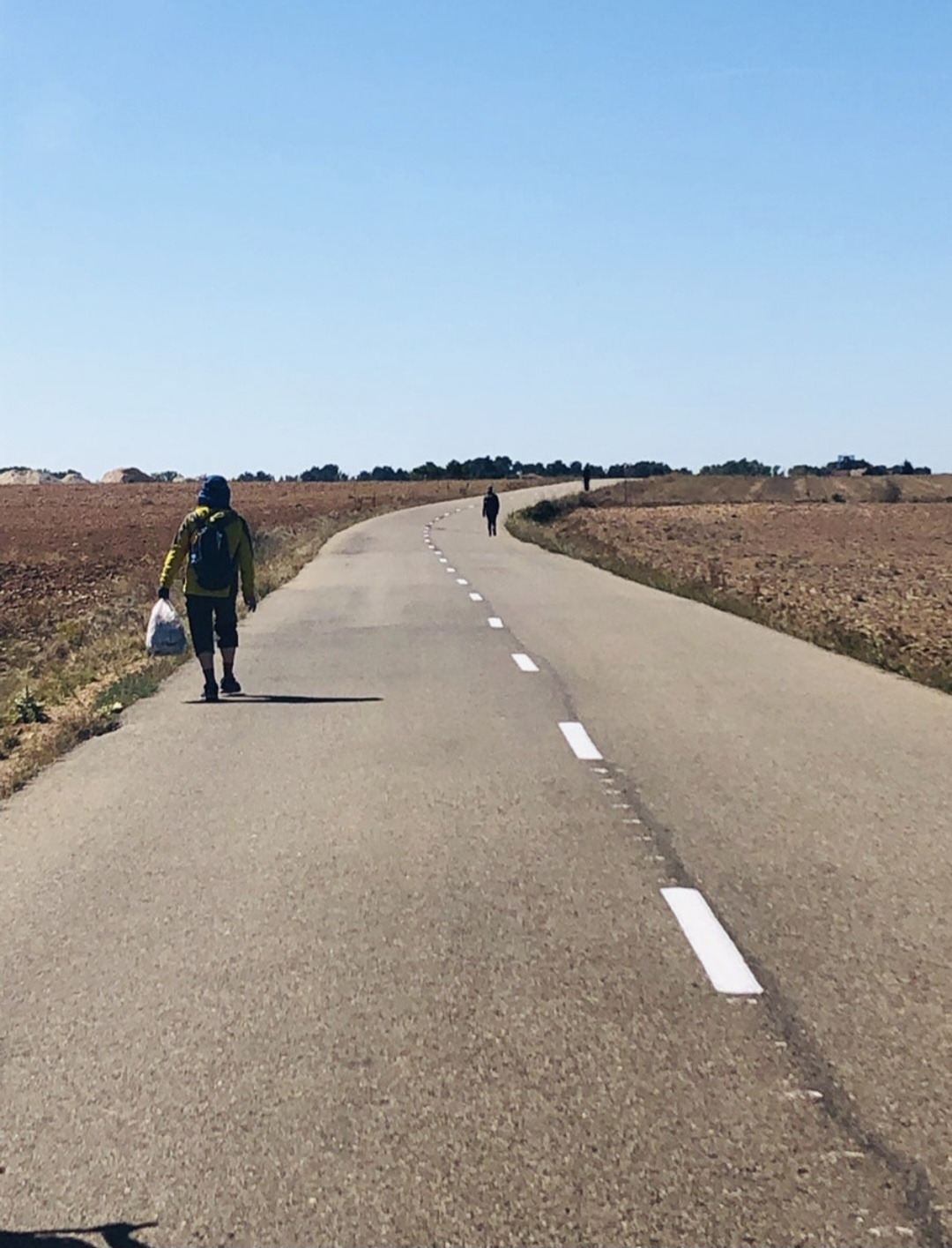 쓰레기를 주우며 걷는 순례자의 뒷모습은