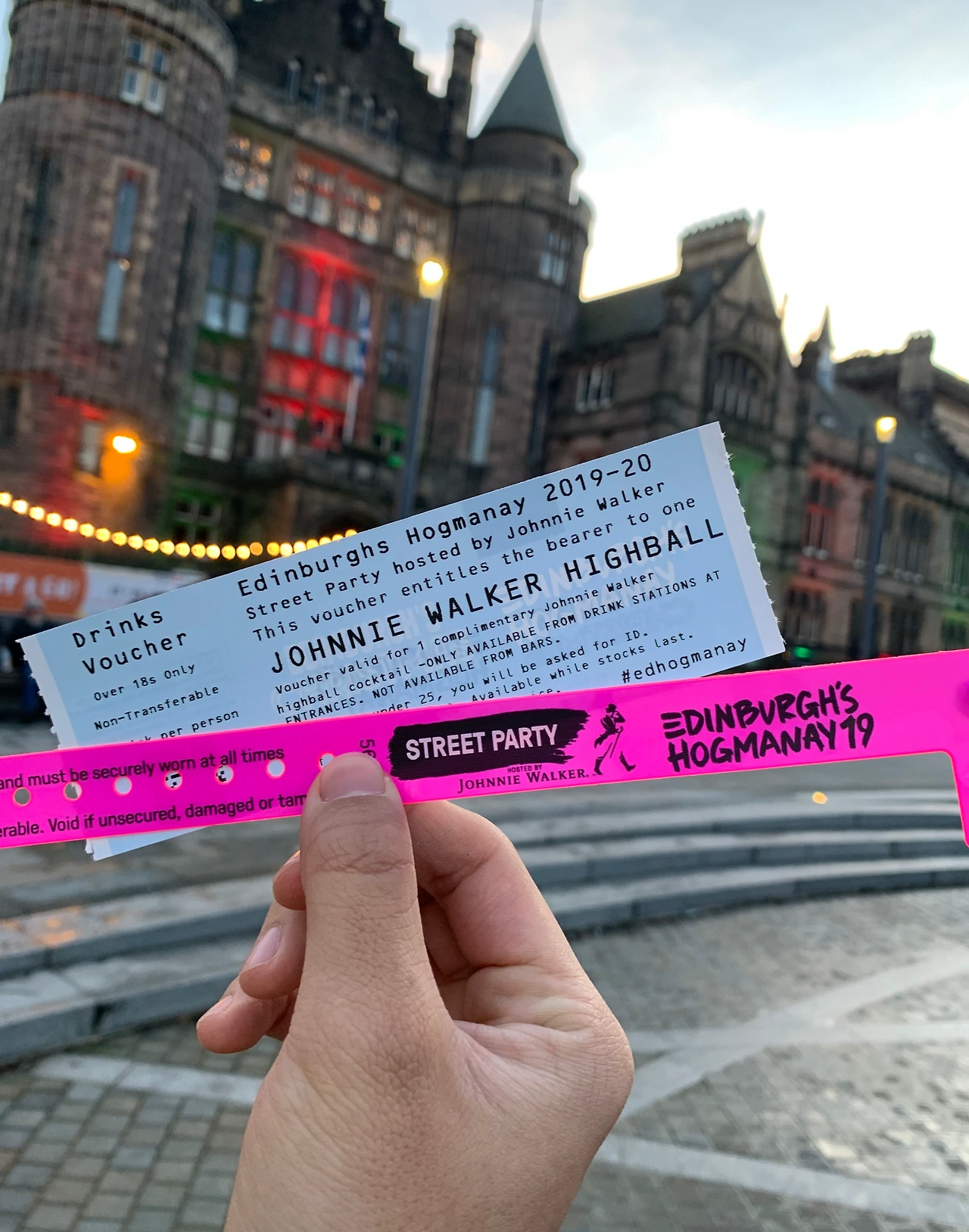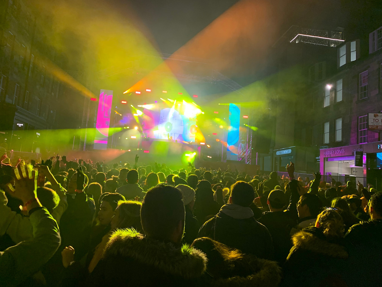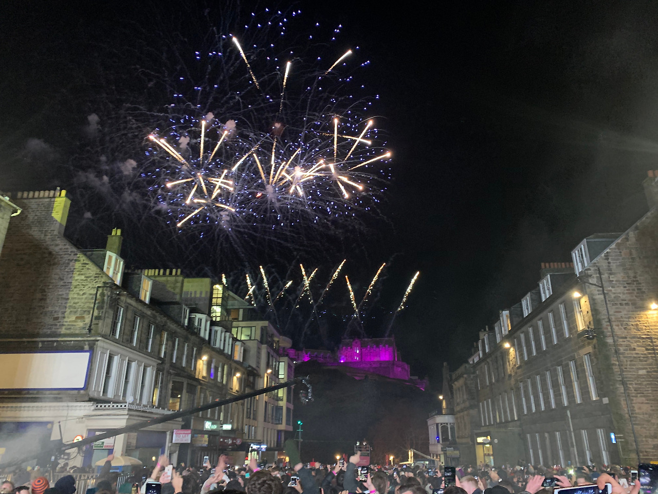 2019년의 에든버러 호그마니(Edinburgh's Howmanay 2019-20)에는 스트릿 파티, 그러니까 에든버러 도시의 길거리에서 파티가 열렸다. 고풍스러운 에든버러가 저녁에는 시끌벅적한 클럽으로 변모하는 것이다. 도시 곳곳에는 바리케이드가 설치되어서 사전에 입장권을 구매한 사람들만 파티 구역에 입장할 수 있었다. 몇 달 전에 미리 입장권을 예약해 둔 나와 클레어도 손목에 종이 팔찌를 차고 파티 존으로 입장했다. 거리 곳곳에 스크린과 무대가 설치되어, DJ가 파티 음악을 크게 틀고 맞은편에 늘어선 가판대에서는 술과 간단한 음식을 팔았다. 다신 볼 수 없는 광경이었다. 매 시간마다 하늘에는 불꽃이 터지는데 형형색색의 스포트라이트는 온 거리를 구석구석 비추어 눈을 한 곳에 둘 수가 없었다. 음악과 술에 취한 사람들은 클럽으로 변한 거리를 두 발로 방방 뛰다가 낯선 사람과 어깨동무를 하고 춤을 춰댔다. 그 순간만큼은 취기와 객기를 빌린 나도 유교 사상의 굴레를 벗어던지고 '위아더월드'라는 마음가짐으로 사람들과 어울려댔다.