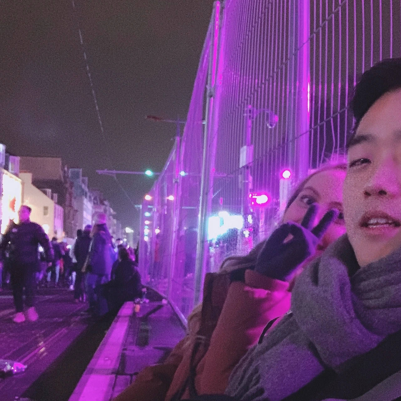 그렇게 모두가 힘들게 놀고 있는 광기의 축제 속에서 11시쯤까지 어떻게든 버틴 것 같다. 그쯤 되어서는 나도 클레어도 도저히 못 참겠다며 혀를 내두르며 빈 공간을 찾아 헤매기 시작했다. 그러다가 결국 사람의 발길이 일시적으로 뜸한 거리 한구석을 찾아내기에 이르렀고 우리는 그냥 바닥에 털썩 주저앉아서 몇십 분 동안 가만히 쉬고 있었다. 주변 사람들을 둘러보니 사람들은 두 부류였다. 다리가 아파서 쓰러질 것 같이 보이는 사람들과, 술에 취해서 고통을 잊은 사람들.