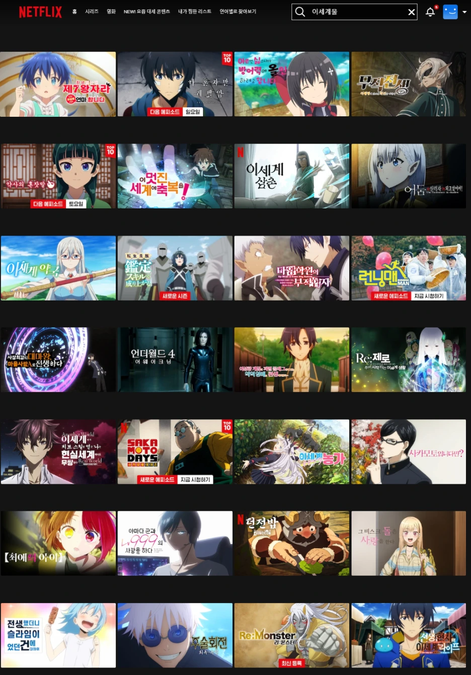 “이세계물(異世界物)”이란 판타지 장르가 대대적인 인기몰이를 하고 있는데, 넷플릭스에서만 검색해 봐도 다양한 작품을 접할 수 있으실 겁니다. 우리나라에서는 먼치킨 또는 타입슬립, 환생 계열의 <메모라이즈>, <환생좌>, <재벌집 막내아들>, <어게인 마이 라이프>, <철인왕후>, <선재 업고 튀어>와 같은 작품들이 '이세계물'에 포함된다 볼 수 있겠군요.