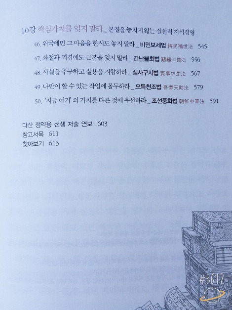 다산의 위대성은 그의 작업량이 아니라 작업의 성격에서 발견된다. 자칫 잡학적 호사 취미에 빠지기도 했던 다른 지식인들과는 달리 그는 한 가지 편집 원리로 경학과 경제의 핵심 주제들을 관통하는 작업을 해냈다. 그 저변에 깔린 정신은 위국 애민 네 글자뿐이었다. 그는 고리타분한 경학의 주제를 다루면서도 실제의 쓰임을 최우선 순위에 두고 작업했다.