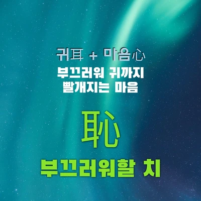 부끄러워할 치(恥) : 부끄러워서 귀까지 빨개지는 마음 - 파렴치(破廉恥) / 후안무치(厚顔無恥)