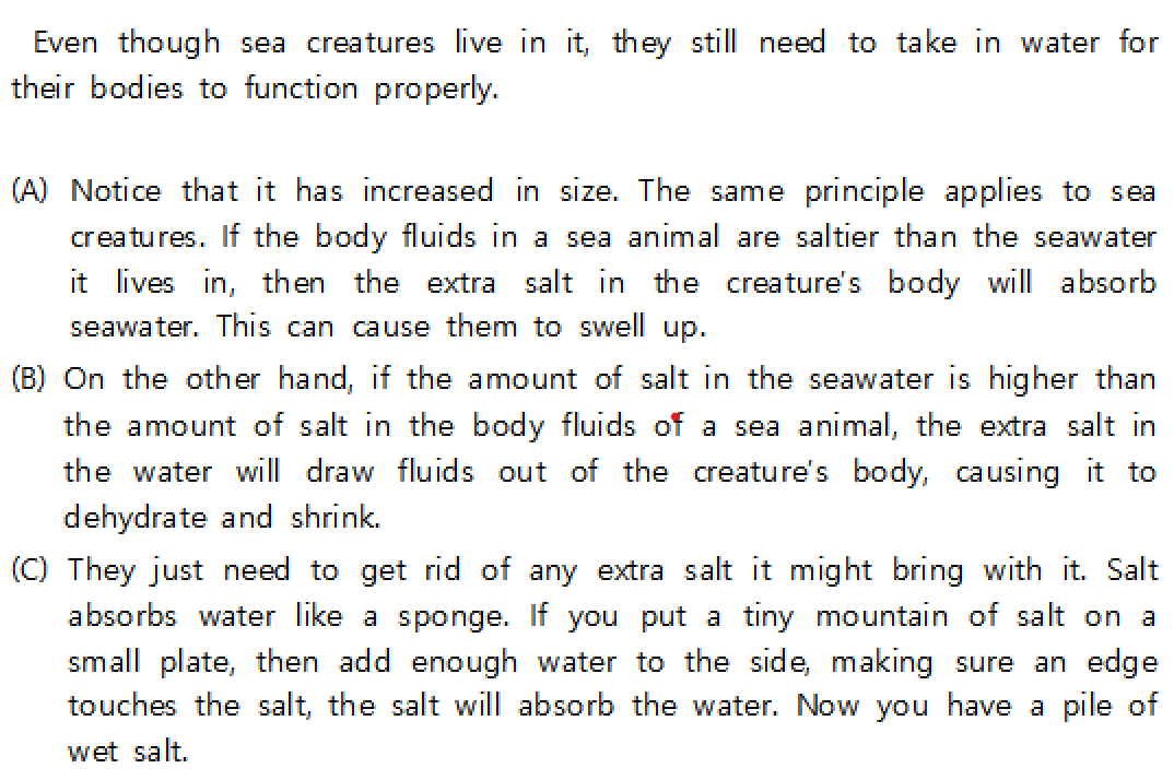 영어 모의고사 지문에서 이와 비슷한 현상을 설명한 자료를 읽었습니다. 물고기는 물을 섭취하는가의 의문에서 시작한 연구가 아닌가 싶습니다. 자료에 따르면 더 농도가 진한 쪽이 다른 쪽을 흡수한다는 내용입니다. 때문에 바닷물은 물고기 체내의 수분을 계속해서 흡수하고 물고기는 그로 인한 탈수를 예방하기 위해 바닷물을 마시게 됩니다. 동시에 흡수된 바닷물의 과도한 염분은 배출함으로써 적당한 농도를 유지할 수 있게 됩니다. 그렇지 않으면 바닷속의 소금을 모조리 흡수하게 되어버릴 테니까요.