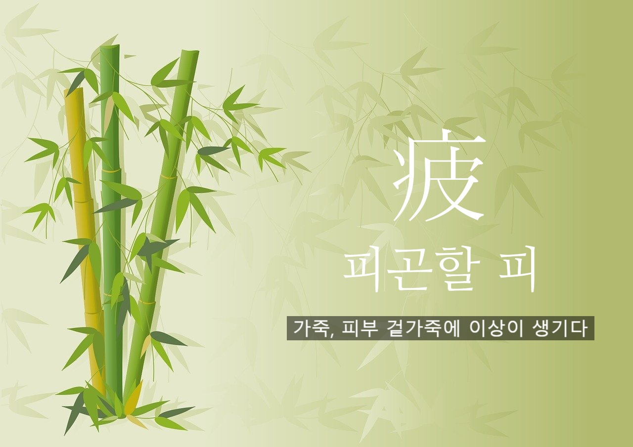 1. 의미 : 가죽에 병들다. 아프면 제일 먼저 표시가 나는 곳. 얼굴, 피부가죽에 이상이 생긴다는 뜻이다.