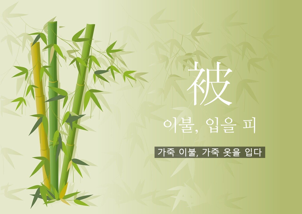 1. 의미 : 가죽(皮)에 옷(衣)을 더하여 만든 글자. 고대에는 가죽을 옷으로 입다. 이불로 덥다. 혹은 피부 위에 옷을 입다의 뜻이 있다. 고대부터 무스탕 입던 호모사피엔스, 그래서 아직도 무스탕 좋아하나 보다.