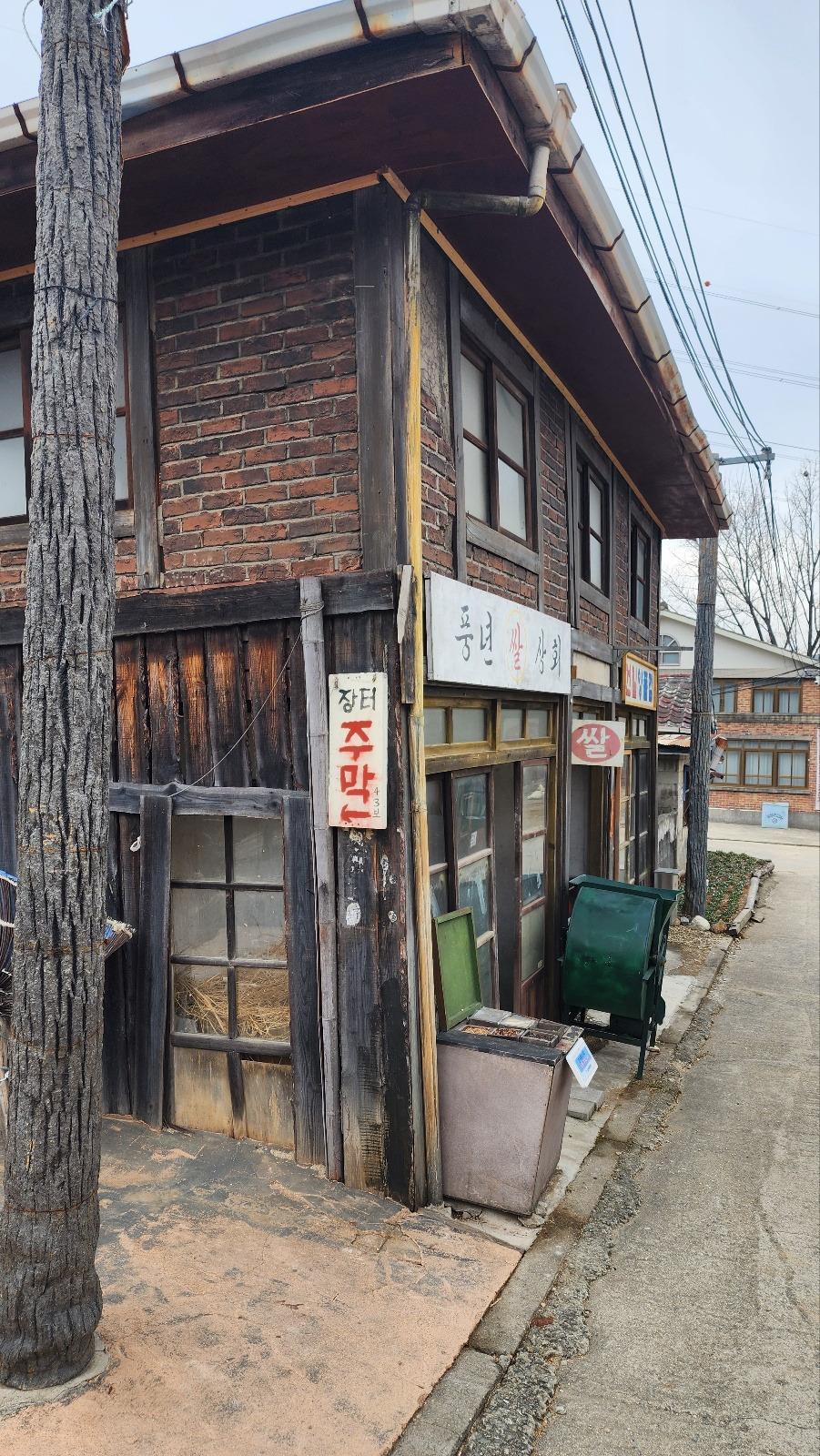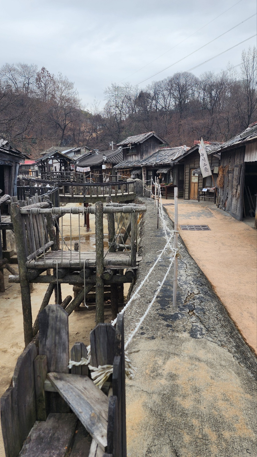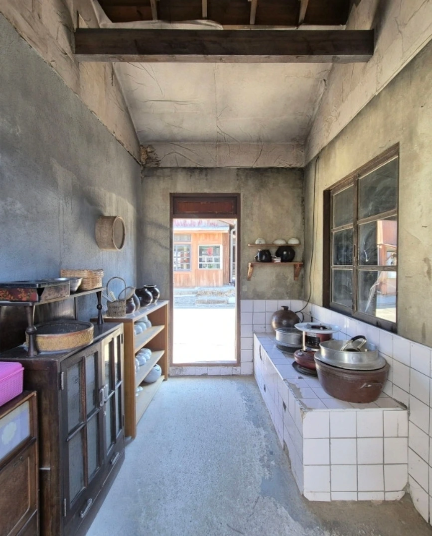 우리를 데려온 첫 번째 여행지는 <순천드라마촬영장>이다. 10시 즈음 도착한 촬영지의 주차장은 비가 올랑 말랑 한 습한 찬 기운으로 여기는 뭐 볼 게 있으려나, 기대감이라고는 별로 생겨나지 않는 분위기이다. 전에도 비슷한 영화 촬영지는 가봤으니 여기나 거기 나겠지. 큰 기대 없이 출발한 촬영지. 한국영화, 드라마는 그다지 흥미가 없는 나에게 가장 눈에 띄겠은 파친코 촬영지. 책으로 읽었더니 흥미가 생긴다. 게다가 멀리 4시간이나 운전해서 데려온 사람도 있는데 뒤에서 자기만 하다가 "여기 뭐 볼거나 있어"하는 뚱한 표정은 예의가 아니다. 본격적으로 흥을 끌어올려 신나게 놀 준비를 한다. "우와~ 엄마 어릴 땐 말이야~"로 시작된 라테는 놀이. "자기 때도 그랬어?" 앞자리 6이라고 놀리며 시작된 촬영장 구경은 어릴 적 추억의 장소와 놀이를 소환하기 충분한 장소였다.