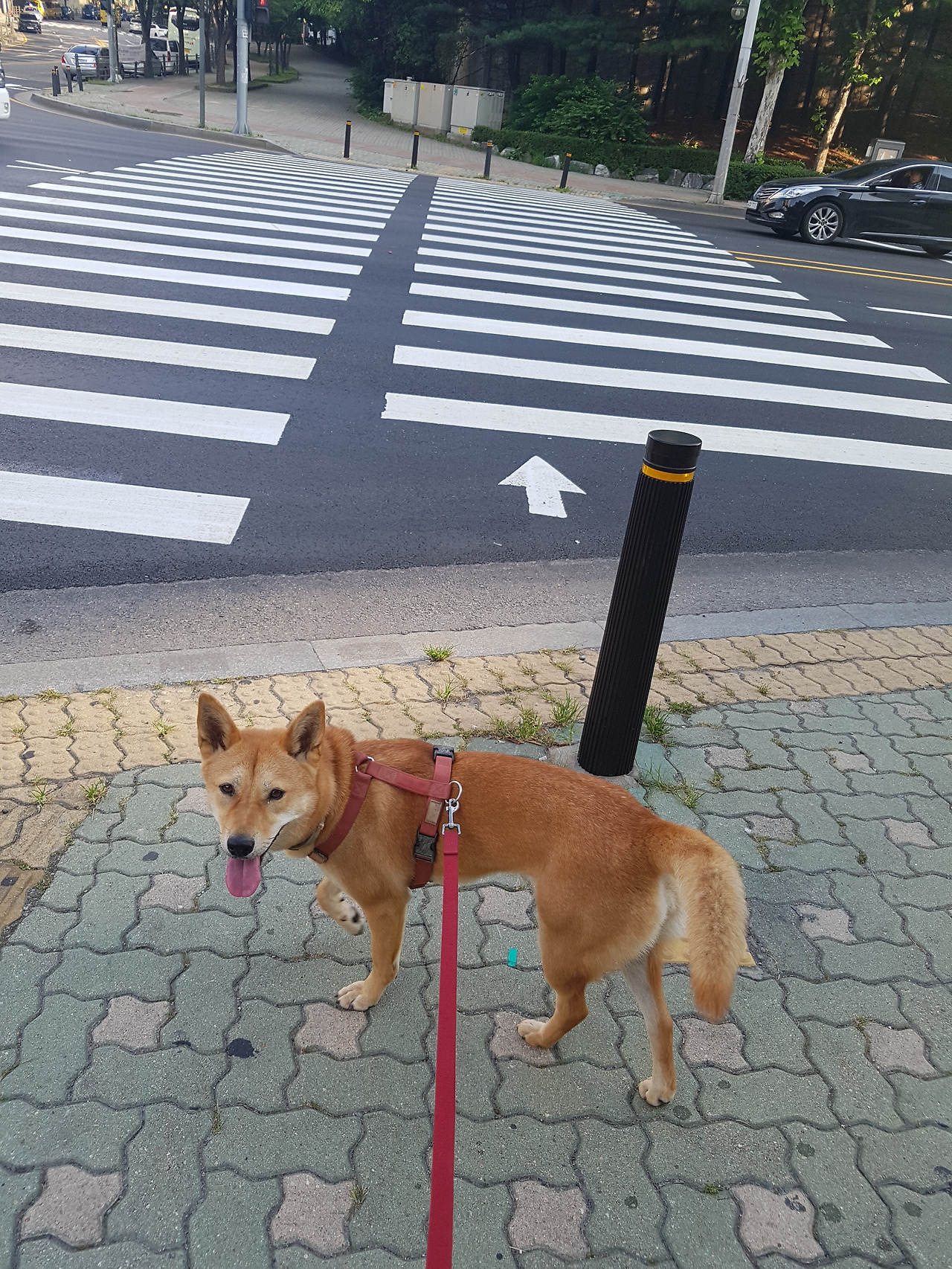 몽이는 이제 횡단보도를 만나면 먼저 자리 잡고