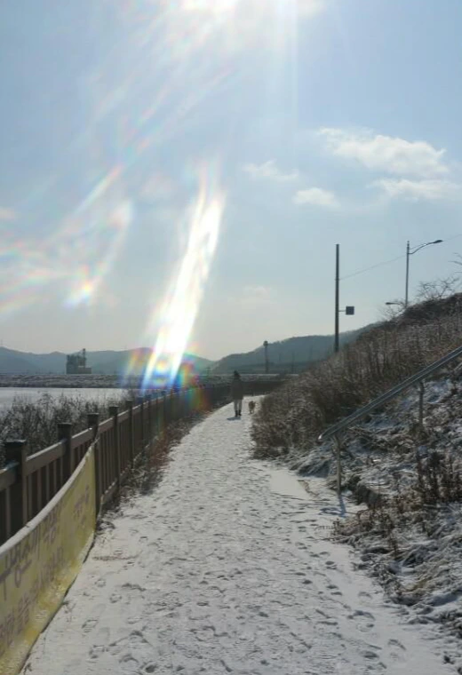 난 늘 땅만 보고 걸어 다니는데.... 앞의 풍경도 볼까 말까.. 긴장을 달고 사는 소심한 성격에 고개가 늘 숙여져 있다. 그런데 몽이를 따라 정신없이 앞으로 걸어가고 또 내 모습에 신경 쓸 사이 없이 몽이의 걸음에 맞추다 보면 새로운 풍경이 나타나고 사라지고 또다시 펼쳐지곤 한다. 나에게 세상을 좀 보라고 몽이가 나타난 걸까?