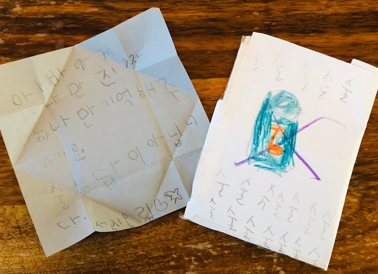 어느 날 아빠에게 편지를 써야겠다면서 저렇게 이쁘게 봉투까지 만들어서 아빠에게 주더라고요.