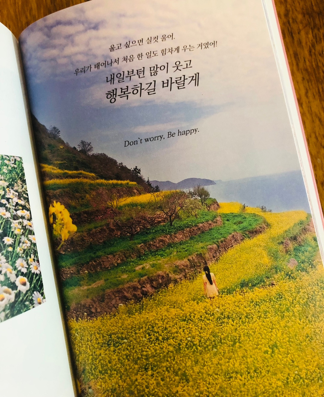 제가 좋아하는 색으로 두 번째로 꼽는 것이 노란색이에요. 노랑이 주는 밝음이 덩달아 저도 밝게 만들어 주더라고요. 저자의 말처럼 낯선 환경에 자신을 노출시킬 필요가 있을 때가 있어요. 똑같은 일상, 똑같은 사람은 어느새 익숙함으로 다가와 더 이상의 자극을 주지 못하죠. 여행을 떠난다고 바로 괜찮아지거나 고민하던 답을 바로 찾지는 못하겠지만, 그 여행의 길에서 만난 여러 가지 내가 모여 조금은 다른 내가 되겠죠.