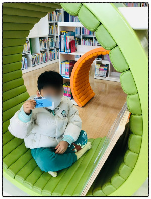 두 아들 모두 자신의 책이음 카드를 손에 꼭 쥐고 유아동 코너에 가서 책을 골라서 같이 읽기 시작했어요.