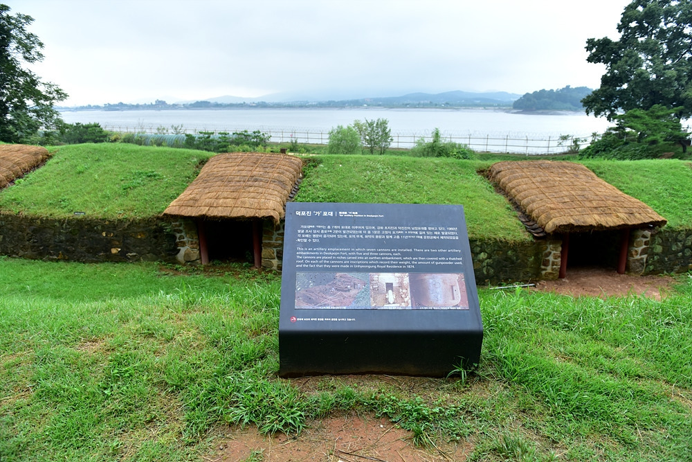 한강을 앞에 두고 구축되어 있는 진지는 역사의 길목을 거니는 방문자를 상념에 젖게 한다. 덕포진은 사람과 부딪침이 거의 없이 혼자만의 사색을 하며 걷기 좋다. 산책로는 1.5km로 꽤 길다. 1980년 발굴로 15개의 포대가 발견되었고 가, 나, 다 지역으로 구분되어 있다. 큰 건물이 없이 낮은 포대가 한강을 향해 줄을 서 있는 잔잔한 풍경이 끊어졌다 이어졌다를 반복한다. 덕포진 산책로 끝에는 뱃사공 손돌에 대한 이야기가 전하는 손돌묘와 돈대터가 있다. 뿌리는 비가 가을의 정취를 더한다. 우리나라를 지켜내기 위해 희생된 영혼들을 위한 추도비 같다.