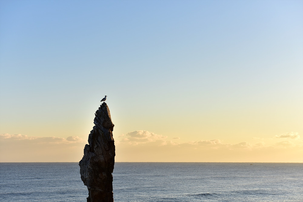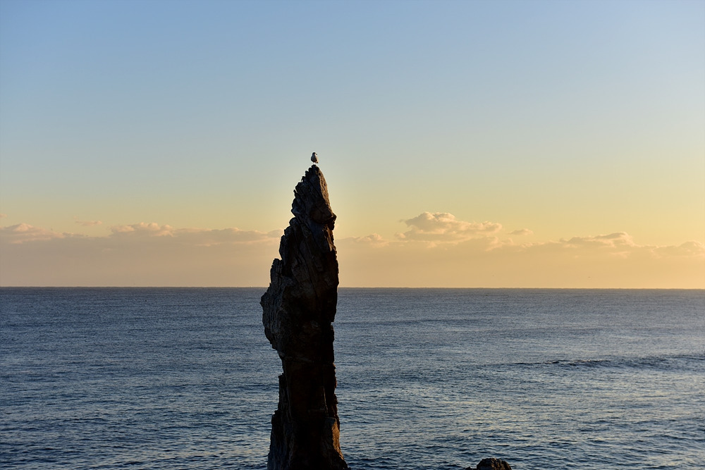 이때의 감각이 좋다. 태양의 붉은빛이 세상 만물에 스며들어 찰나적으로 온 세상이 붉어지는 순간, 오감은 찌릿한 자극을 받는다. 붉은빛을 머금다 토해내듯 본래의 색을 찾는다. 해가 구름 위로 훌렁 떠올라버린다. 그러고 나면 바글바글했던 사람들이 흩어진다. 그때부터가 온전히 나만의 시간이다. 빛이 비쳐 드는 각도가 시시각각 변하고 파도는 빛과 맞잡고 왈츠를 춘다. 촛대바위 위로 갈매기 한 마리가 날아오르더니 턱 자리를 잡는다. 털을 고르기도 하고 해를 바라보다 날개를 폈다 접는다. 한참을 그렇게 촛대바위 위 갈매기와 함께 아침 해를 즐긴다.