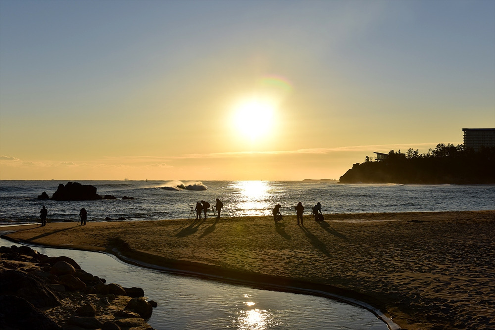 해 뜨는 시간은 7시쯤, 밤이 많이 길어졌다. 곧 겨울이다. 어제, 오늘을 위해 일찍 잠자리에 들길 잘했다. 숙소를 나서서 추암해변으로 향하는 걸음이 가볍다. 여명부터 차근차근 해가 뜨는 모든 과정을 고스란히 보고 싶다는 마음에 일출 포인트로 바쁘게 간다. 서둘렀는데도 이미 몇 명의 사진가들이 삼각대를 세우고 촛대바위 앞에 자리를 잡고 있다.