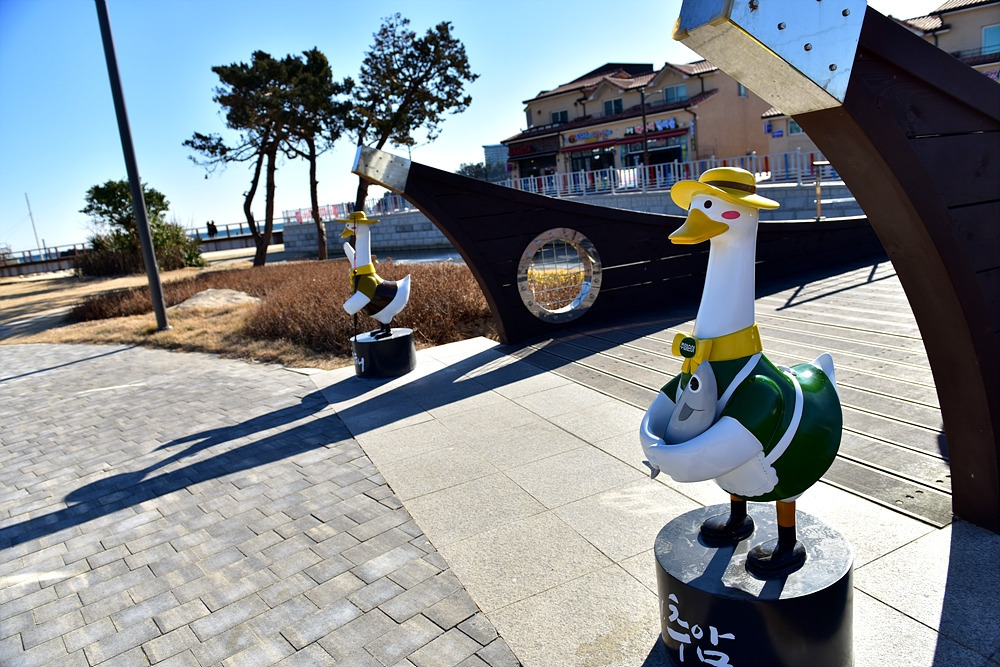 형제바위 쪽으로 내려와서 추암 해변으로 향한다. 햇살이 파도를 보석 알갱이처럼 반짝거리게 비춘다. 해변에서 한참 파도를 바라보다 나오는데 오리와 거위가 다리 아래 물가에서 꽥꽥거린다. 어린아이와 함께 온 가족이 오리들과 함께 놀고 있다. 아이가 새우깡을 던지면 오리들이 우르르 달려들고 아이는 도망가느라 바쁘다. 뒤돌아 새우깡을 던지고는 또 도망가고.... 오리들은 꽥꽥 거리며 졸졸졸 따라다닌다. 먹이 주는 사람을 놓칠 수는 없다는 비장하기까지 한 추격에 절로 미소가 떠오른다.
