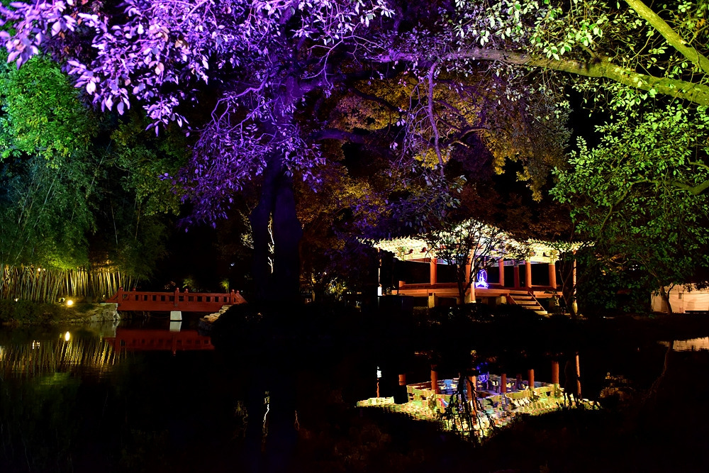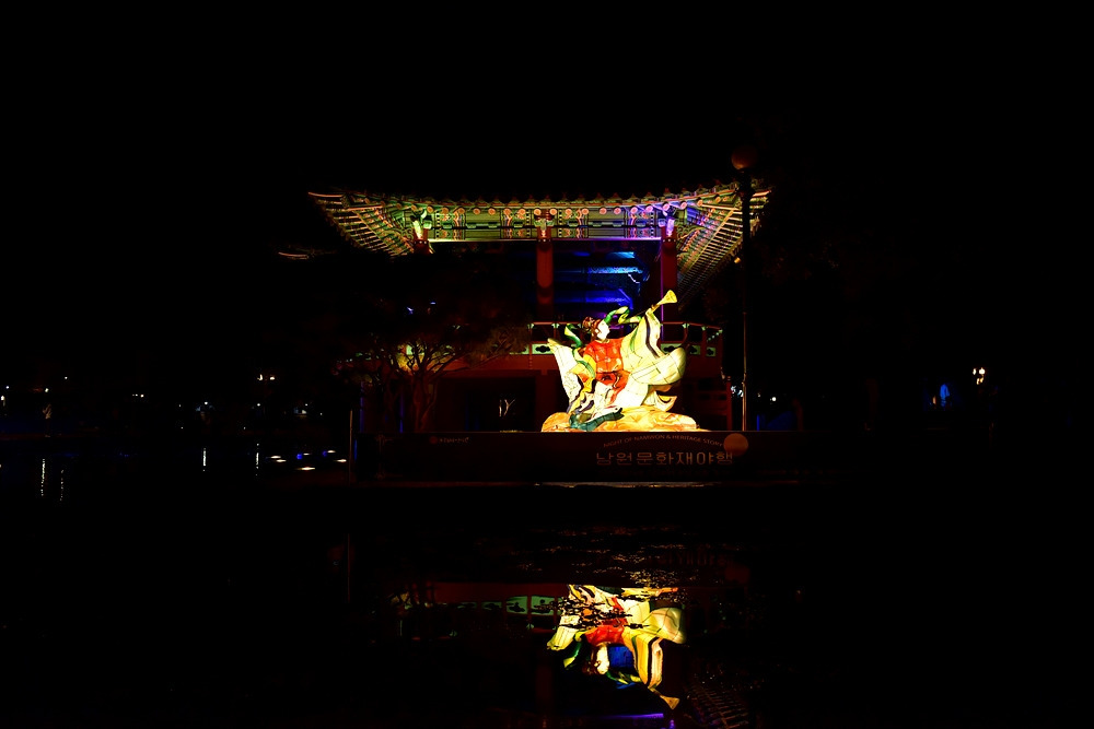 광한루원은 야경이 아름답다. 낮시간에는 가을 느낌이 물씬 나고 저녁에는 조명을 받은 누각과 정자가 환상적인 분위기를 자아낸다. 연못에 비친 반영이 현실과 이상을 넘나드는 착각을 불러 일으킨다. 정원에 커다란 달 전시물이 은은하게 달빛을 뿜어내 핫 포토존을 만든다. 낮에도 보고 밤에도 보려면 광한루원 근처에 숙박을 정하는 것이 좋다. 광한루원과 담장을 사이에 두고 있는 한옥숙소인 남원예촌은 인기 숙소이니 여행 일정 한참 전부터 알아보아야 한다.