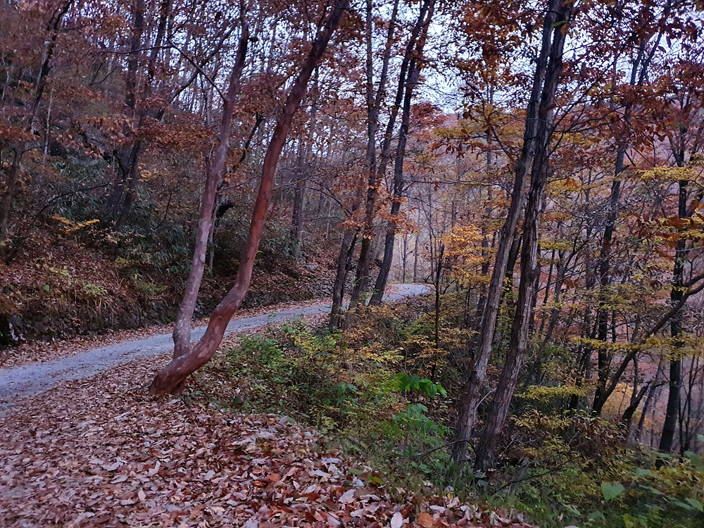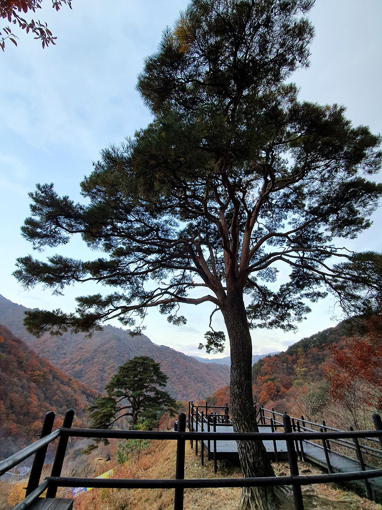 할머니나무 위쪽 20m 지점에는 천년송보다 날씬하고 작은 할아버지나무가 있다. 두 부부 소나무 근처에서 한참을 머무른다. 산은 가을에서 겨울로 가는 길목의 색으로 뒤덮여 있고 멀리 산 능선들이 중첩되어 동양화를 그린다. 목소리를 내기보다는 마음의 소리에 귀 기울여 지리산의 품에 몸을 기댄다.