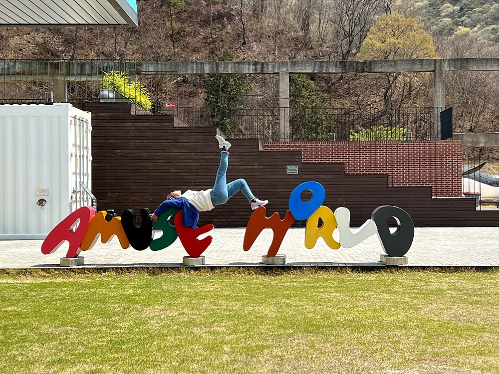 이 옷을 입고 간 곳들이 꽤 많다. 가방에 자리를 차지하지 않으니 무의식적으로 챙겨 넣게 되었다. 처음 간 곳은 벚꽃 피는 완주 송광사길~ 이른 아침에 벚꽃을 찍기 위해 서둘러 나섰고 바람막이가 서늘한 기온을 막아주었다. 완주의 산속등대 복합문화공간에서는 컬러풀한 공간에 방점을 찍는 듯한 컬러가 돋보인다.