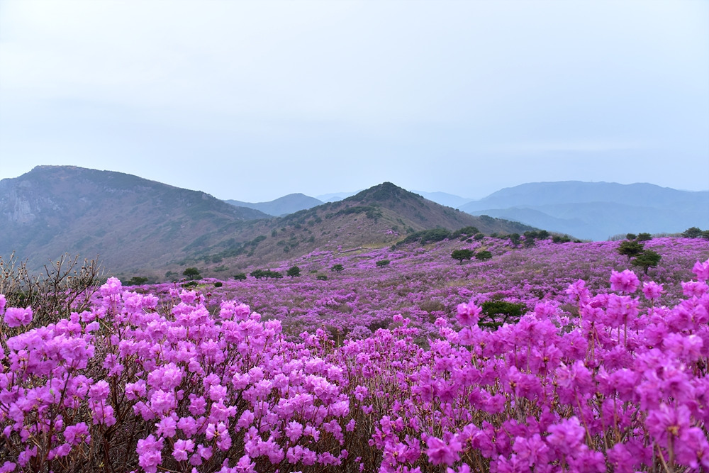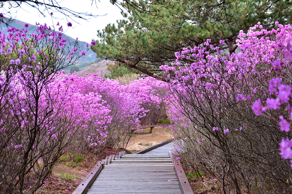 대구 비슬산에 올라갈 때는 정말 없었으면 어쨌나 싶다. 비슬산자연휴양림 입구에서 셔틀버스나 전기차를 타고 대견사까지 가려던 계획이 무산되었다. 평일인데도 차편이 완전히 마감되는 바람에 등산을 해서 갈 수밖에 없었다. 1/3쯤 올랐으려나, 세차진 않지만 비가 내리기 시작했다. 얼른 바람막이를 꺼내 있었다. 정상까지 비가 부슬부슬 왔는데 그 비를 다 맞았으면 백 프로 감기 걸렸을 텐데... 거의 젖지 않았다. 고난의 행군을 한 보람을 느끼고도 남을 만큼 비슬산 참꽃군락지는 천하절경이었다.
