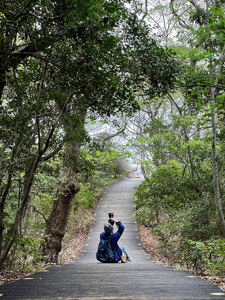 완도 구계등 해변은 해변을 따라 나있는 숲이 좋다. 중간쯤 해변으로 들어가는 무장애숲길이 힐링 스폿이다. 지형의 흐름 따라 부드럽게 흘러가는 나무데크 위에 철퍼덕 앉아 휴식하였다. 청산도에서는 날씨가 궂어 내내 입고 다녔다. 사이즈가 낙낙하니 그 안에 몇 겹의 옷을 입고 그 위에 입어도 편하다. 그런데 사진을 찍으면 떡대로 보이니 이때 옷을 입은 사진은 패스다.