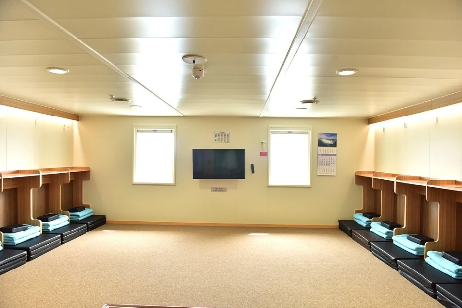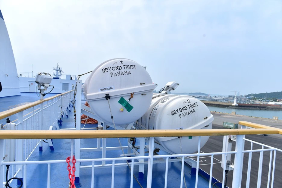 110명이 탑승할 수 있는 구명보트 10개와 천장에 잡을 수 있도록 설치한 봉