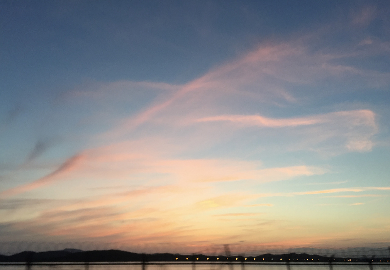 예쁜 보랏빛의 노을이 어른거리는 시간.