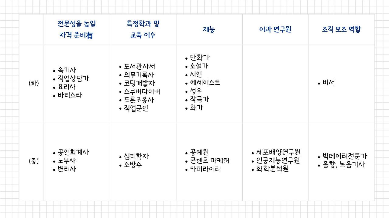 제한없이 내가 하고 싶은 직업을 나만의 기준으로 분류하기