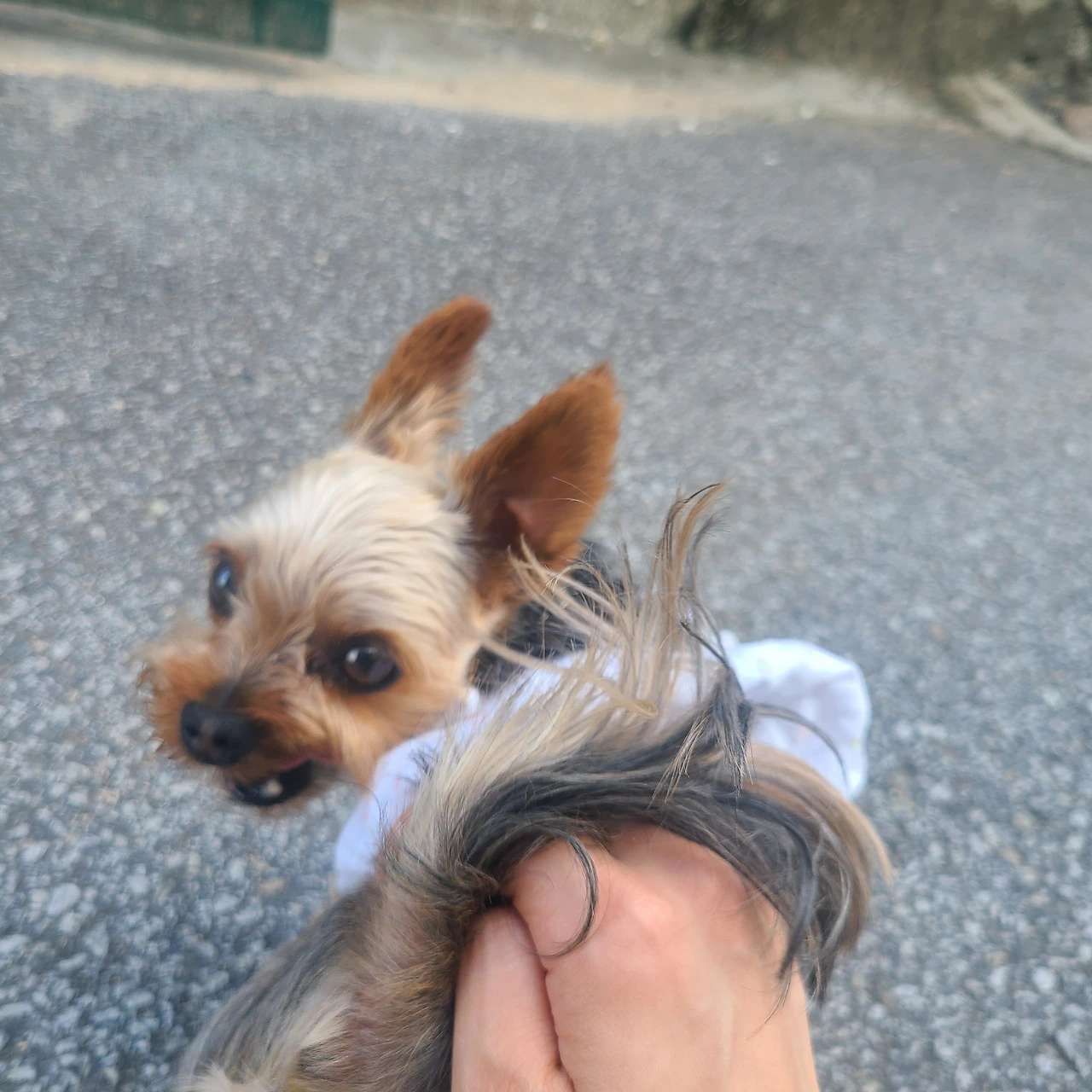표정은 사납게 나왔는데 엉덩이를 만지지 않으면 삐진 것 같이 가버린다