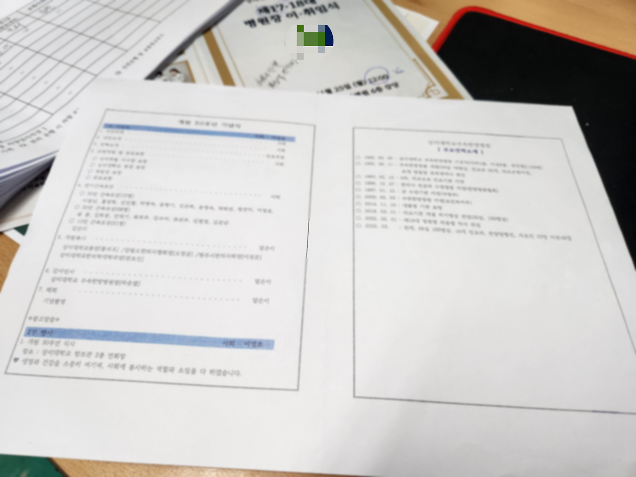 지난 행사 식순 팜플렛이 있었지만 모든 걸 새로 만들어야 했다. 나는 행사에 참여해서 본 적도 없었기 때문에 임원분들이 '저번에 이렇게 했던 것 같아'라는 말에 의지해서 하나씩 준비해 나가야 했기에 더욱 답답했다. 과장님께서 자료를 뒤져보다가 2018년에 있었던 병원 OO주년 기념식 행사 식순 팜플릿을 찾아내서 귀중한 고대 유물을 발견한 것 마냥 좋아하시는 모습을 봤는데 내가 보기엔 병원 이미지게 걸맞지 않게 조잡하게 만든 것이 보여서 심기가 불편했다. 이왕 치르는 행사면 내가 맡은 부분은 제대로 준비하고 자료를 남겨놔야겠다 싶어서 식순 팜플렛, 플랜카드, 기념 수건, 초청장, 공로패 등 디자인과 문구를 다른 병원 행사 자료를 참고하면서 초안과 시안을 저장했다. 그렇게 준비하여 진행한 행사는 자체적인 평가에서 성공적으로 치러졌다는 이야기를 들어서 뿌듯했다.