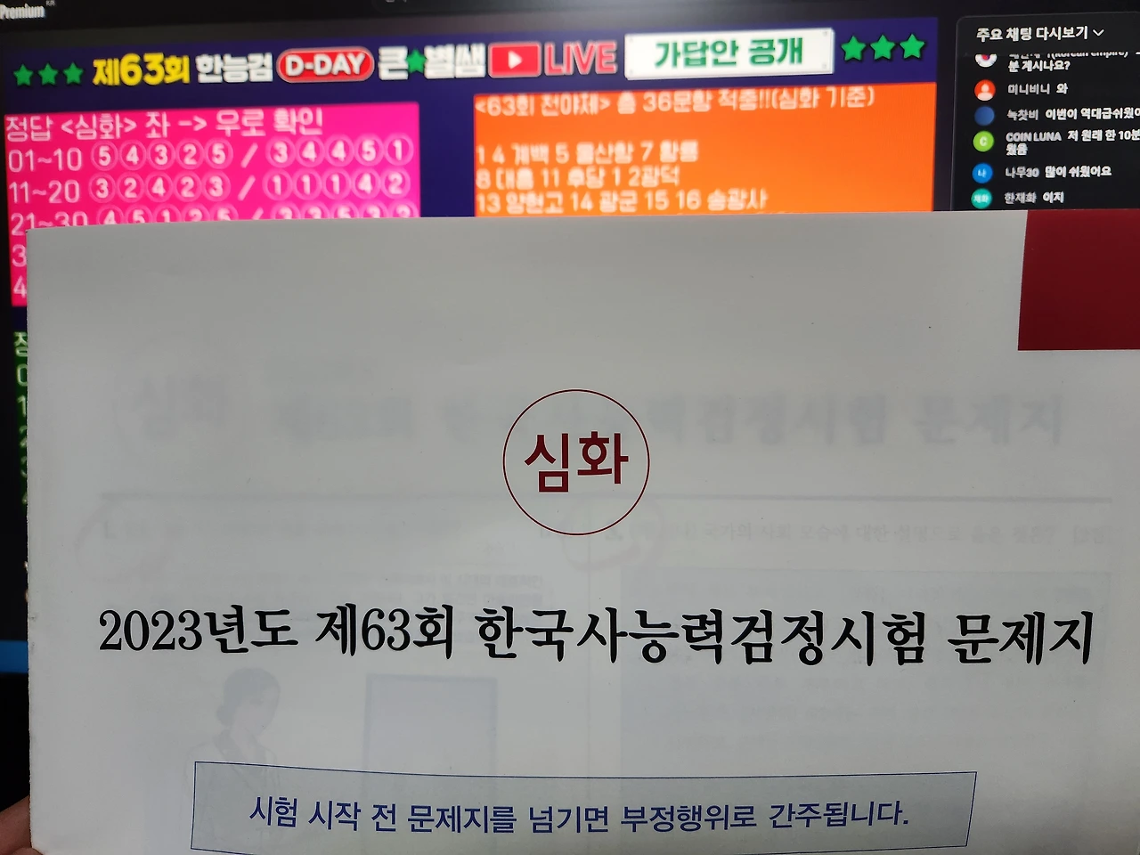 최근에 제63회 한국사능력검정시험(이하 한능검)을 치렀다.