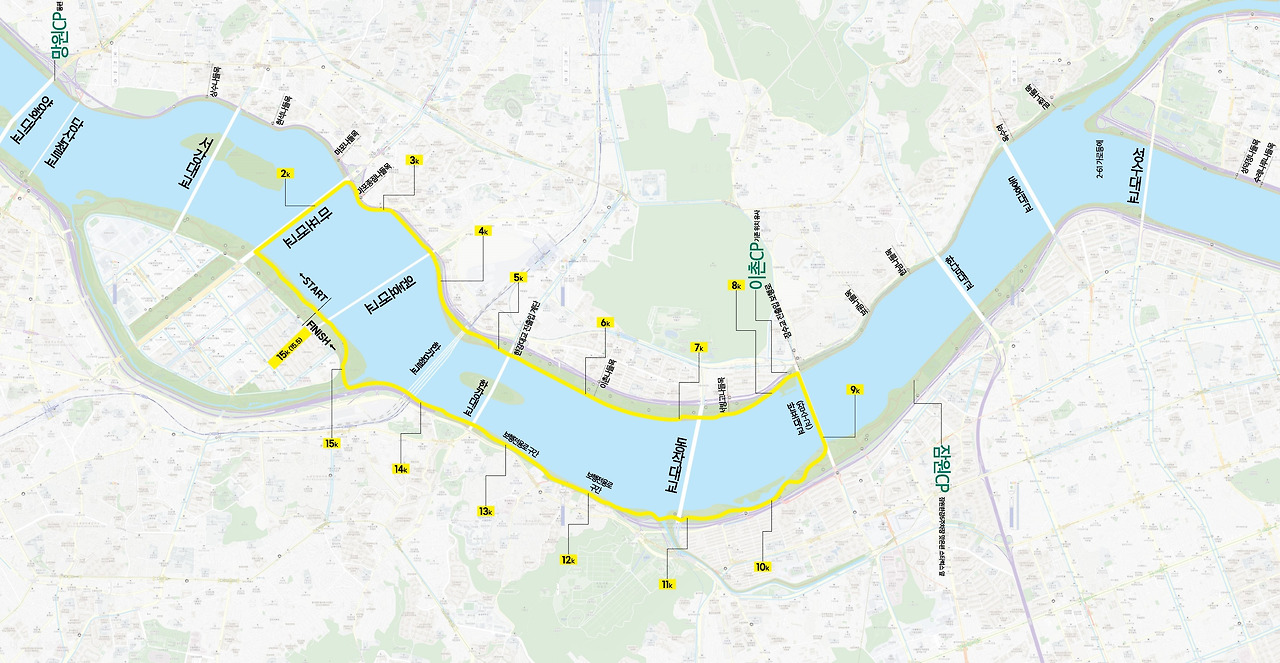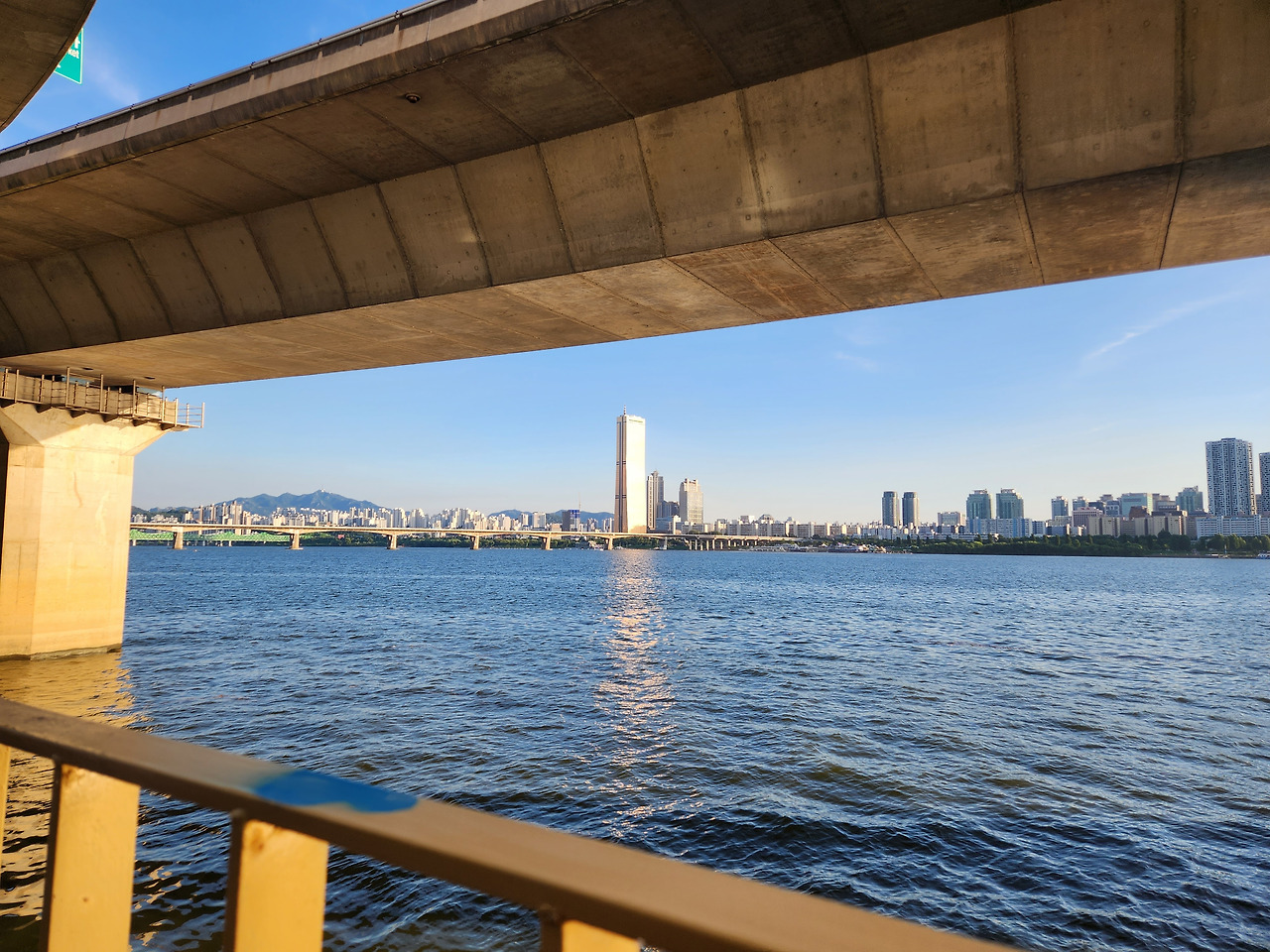 저녁 6시는 아직 밝았고 야경을 보긴 힘들었지만 충분히 한강은 아름다운 곳이었다. 간혹 가다가 펼쳐지는 다리 건너 서있는 높은 건물들의 풍경을 찍기도 했는데 대부분 감성사진이라기 보단 '나 이런 곳에 왔었다'라는 인증샷 느낌의 사진이었다. 한강의 아름다운 야경을 보면서 걷는 것이 이 대회의 취지지만 나는 야경을 보기보단 예약한 버스 시간을 맞추기 위해 최대한 빠르게 걸었다. 버스를 놓치면 안 된다는 생각에 뒤에 괴물이 따라오는 것 마냥 빠르게 움직였는데 다행히 시간이 넉넉히 남아 예약 시간을 당길 정도였다.