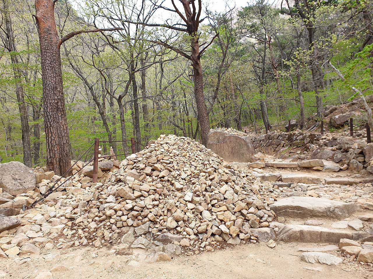 흔들바위 올라가는 입구에 소원의 돌들이 가득이다