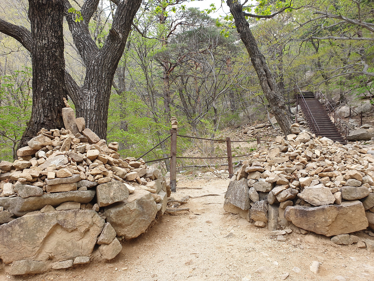 흔들바위 0.6Km의 이정표를 따라 오르면 '소원 탑'을 지나고 가파른 오르막 길이 시작된다.