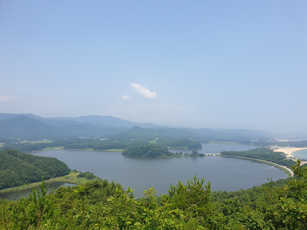 고요한 호수 ‘화진포’, 아름다운 ‘화진포 해변’이, 멀리 보이는 산봉우리와 곳곳에 푸름이 가득한 나무들, 어느 것 하나 빠지지 않는 이 산수가 여기 다 있다니, 참 아름답다.