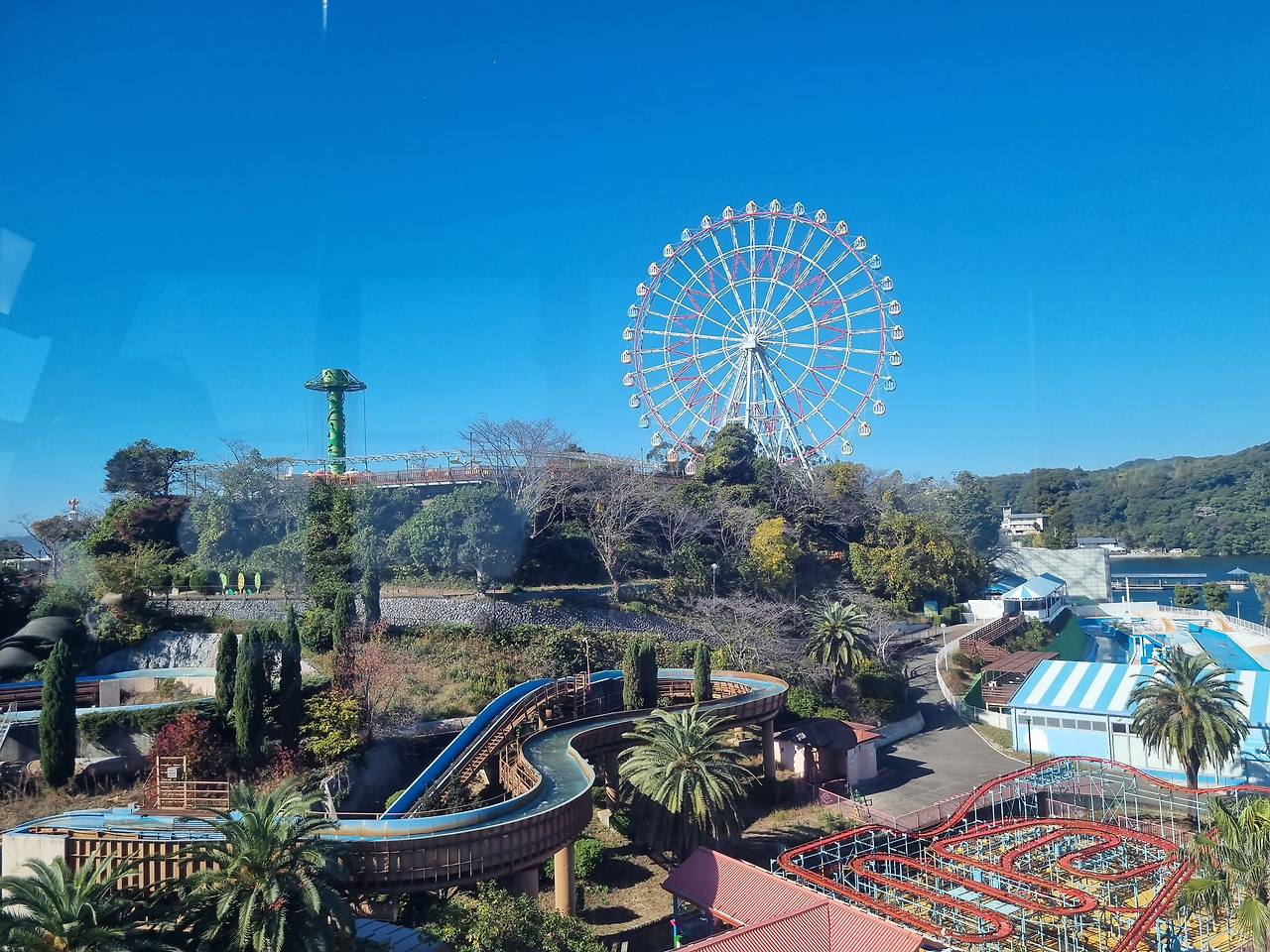 숙소에서 1시간 넘게 하마마쓰까지 열차를 타고 버스로 40분을 더 가서야 도착한 곳은 칸잔지 로프웨이였다. '하마나코'를 속초 영랑호로 생각하고 걸어볼까 했는데 둘레가 약 114km로 너무나 큰 호수였다. 호수를 보기 위해서는 로프웨이가 필수다. 동심을 부르는 놀이동산 하마나코파루파루를 시작으로 꽃의 정원, 온천, 유람선, 로프웨이등이 호수 주변에 모여있다. 전망대를 좋아하는 나는 오래된 로프웨이를 타고 먼저 하늘로 향했다.