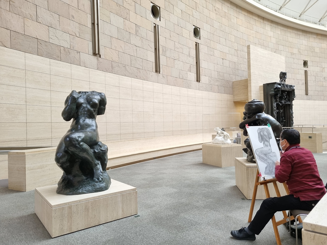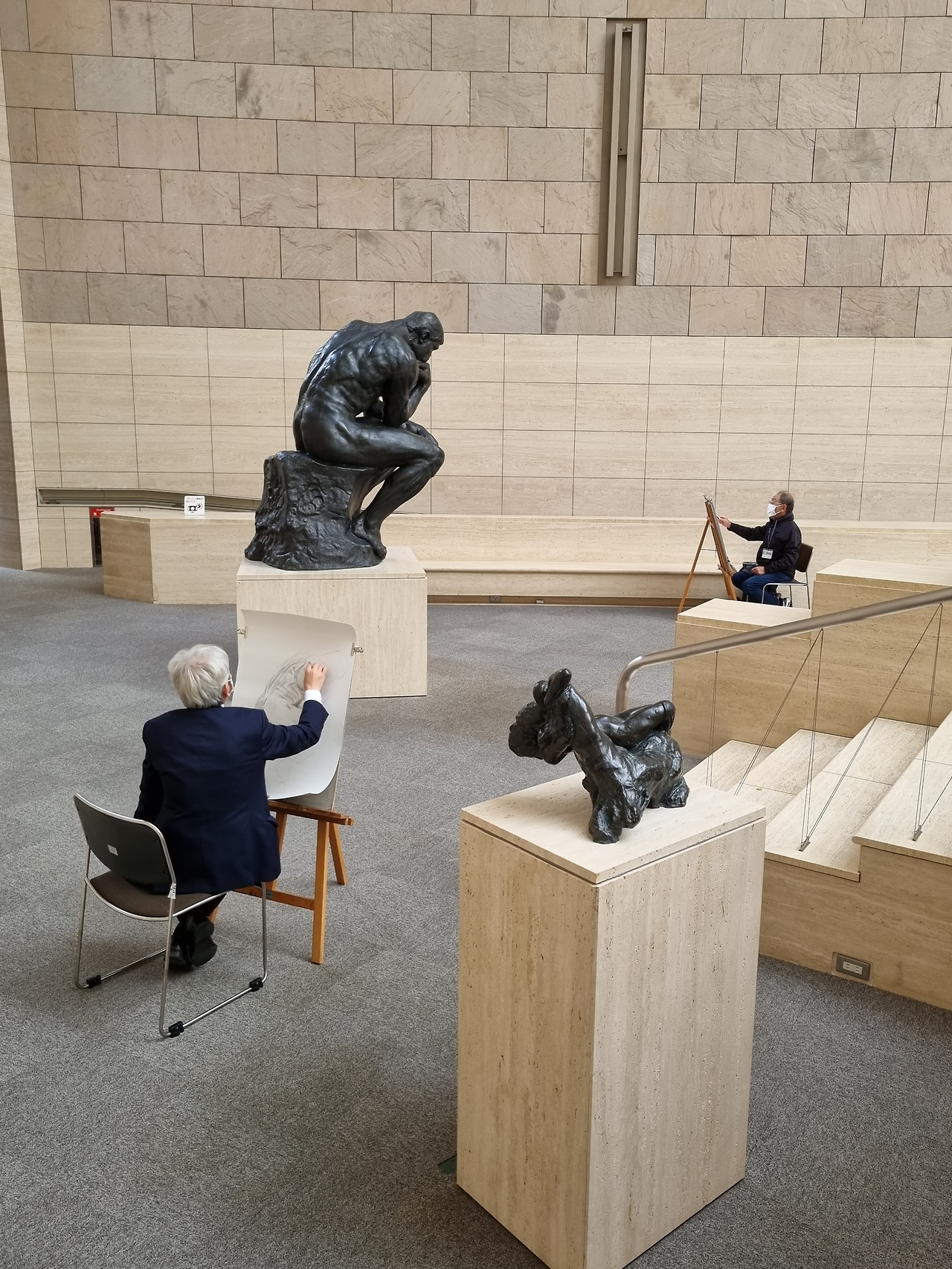 본관 관람이 끝나면 바로 로댕관으로 이어진다. 현재는 사진촬영이 가능한 곳이다. 입구에 들어서자마자 앉아서 그림 그리는 사람들이 보였다. '예약하면 그림을 그릴 수 있나.' 앉아 있는 모습만 봐도 멋지다. 이젤까지 갖추고 스케치를 했다. 너무 조용해 연필 움직이는 '사각사각'소리만 크게 들릴 뿐 너무 고요했다. 사람들을 보는 재미도 있다. 심각한 얼굴로 손을 움직이며 구도를 잡고 벌써 그림을 완성한 할아버지도 계셨다.