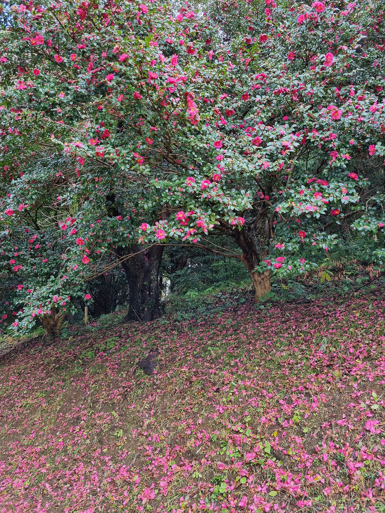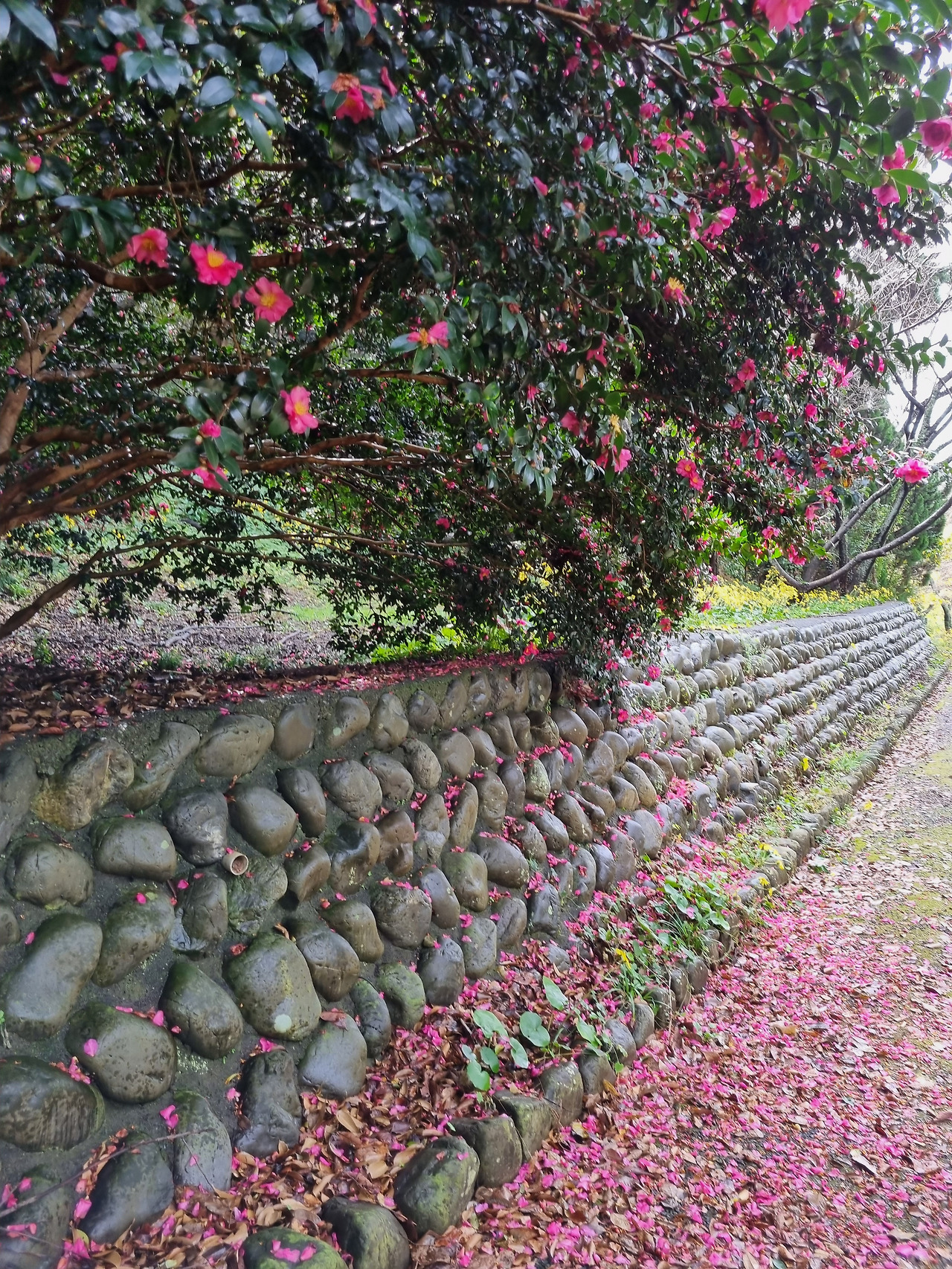 비탈길을 올라오니 시내가 보였다. 그리고 미술관 건물도 한눈에 들어왔다. 도서관이 있고 심포지엄이 열리는 공간도 있어 규모가 컸다. 위로 더 오르니 동백꽃잎이 바닥에 가득이다. 너무 예뻐 한참을 서서 사진을 찍었다. 꽃향기가 어찌나 은은하게 퍼지는지 내리는 비에 흙냄새와 뒤엉켜 향긋한 동백차를 몇 잔이나 마셨는지 모르겠다. 90도 넘는 뜨거운 물에 꽃잎과 베이스로 흙을 넣은 차, 상상만으로도 즐겁다.