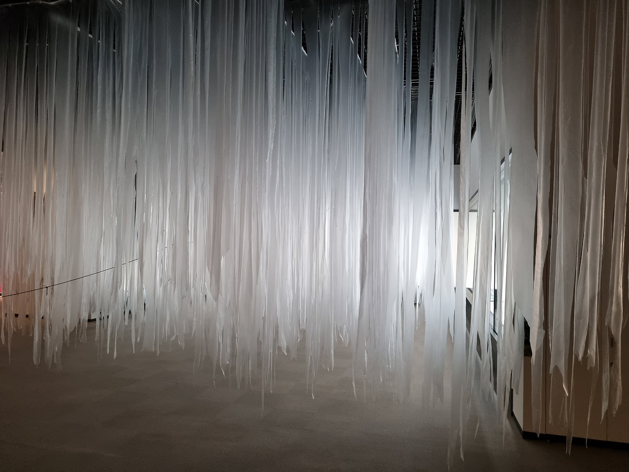 일본 작가의 회화작품은 사진을 찍을 수가 없어 자료가 없다. 여행에서 사진이란 내 머릿속의 기억을 소환하기도 하고 글 쓰는 데 있어 재료가 되기도 한다. 예술의 창작작품은 더군다나 시간이 지나면 무엇을 봤는지 더더욱 생각이 나질 않는다. 분명 밝은 그림들이 많았던 기억은 있는데 그것도 정확지 않다. 일본에서 미술관이나 박물관을 다니다 보면 자국에 대한 작품, 이야기들을 촬영 불가로 표시해 높은 곳이 많다. 물론 이해한다. 관람에 방해가 될 수 있고 작품 유출에 대한 방어일 수도 있지만 세상에 나와 전시까지 하는 시점에서 입장을 바꿔 보면 과하다고 느낄 수도 있다. 중간부터 사진을 찍을 수 있었는데 별 의미가 없었다. 천조각이 말하는 게 무엇인지, 우리 집 거실과 똑같은 흰 시폰 커튼이 환풍기 바람에 펄럭 펄럭였다. 작품에 대한 편견은 없지만 보는 사람들, 찾아오는 사람이 없다면 작품의 가치도 그만큼 떨어질 수밖에 없다. 그림을 보고 하루, 일주일, 한 달이 지나 어떤 걸 봤는지 생각도 나지 않는다면 그 장소도 잊힌다. '현립 미술관인 만큼 좀 더 유연한 관람 문화를 정립하는 게 어떨까.' 하는 아쉬움이 보는 내내 남았다.