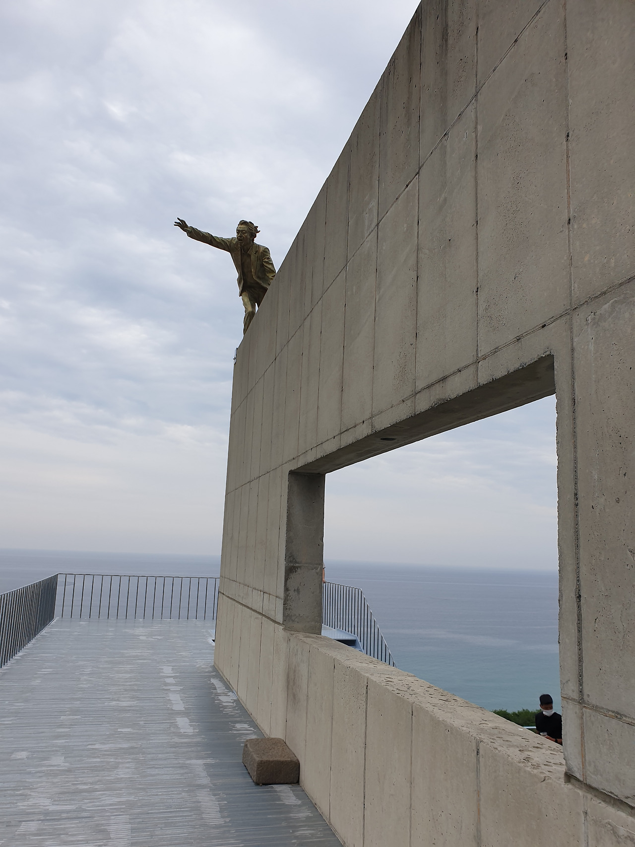흐린 날씨지만 왼쪽으로 끝없이 펼쳐진 바다는 역시 좋다. 정류장에 내려 비탈길을 오르다 보면 큰 곰을 만난다. 무섭기보다는 귀엽다. 미리 예약한 티켓을 찾기 위해 먼저 매표소에서 입장권을 받고 밖으로 나왔다. 조각공원을 가려는데 막혀있어 다시 들어가 확인하니 "'나가는 문'에서 표를 찍고 들어가시면 됩니다."라는 황당한 안내를 받고 막상 찍으니 '삑'소리를 내며 통과가 됐다. 아니, 그럼 문구를 변경하거나 미리 공지를 해야지, 시작부터 삐꺽했다.