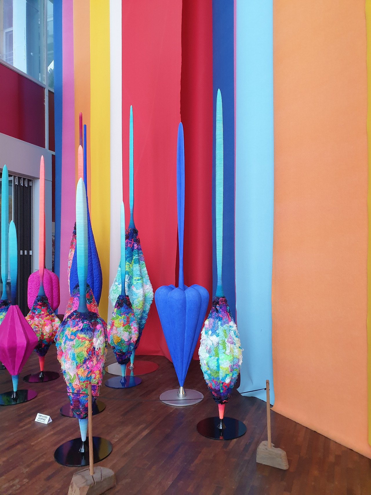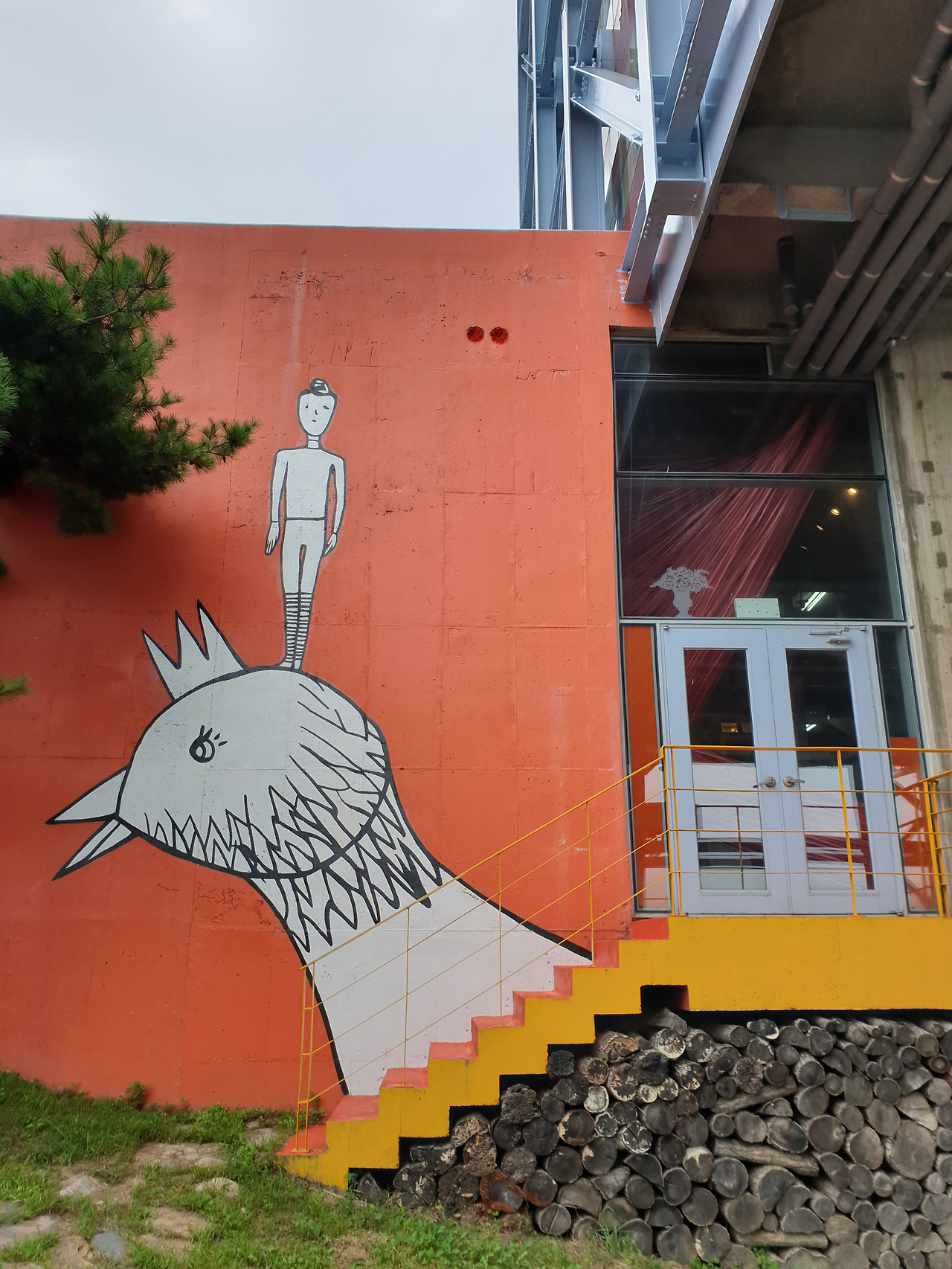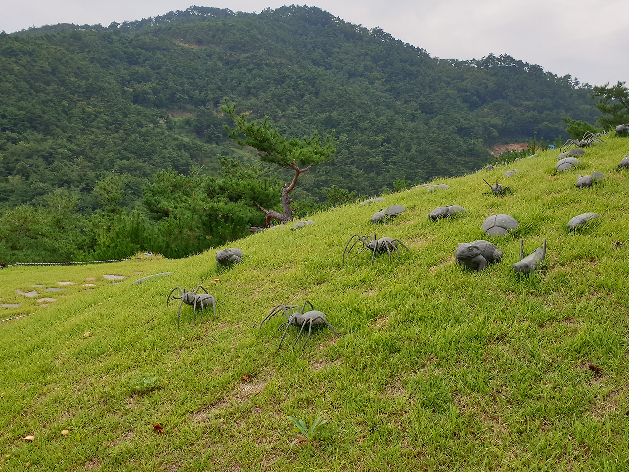 오후 비예보로, 야외 '조각공원' 관람을 먼저 시작했다. 곳곳의 작품들과 함께 소나무 정원도 있고 해시계도 있어 발품을 부지런히 해야 꼼꼼히 볼 수 있다. 3만 평이 넘어 2시간을 보아도 부족할 만큼 상당한 운동량이 소모된다. 끝인가 하면 다시 나를 반기고 가끔씩은 쉬어가라며 의자들도 있어 하루 종일 있어도 심심하지 않다. 예전과는 전혀 다른 새로운 모습으로 변신한 '하슬라'가 나쁘지 않다. 가끔씩 알록달록한 건물을 보며 '무채색이면 어땠을까' 하는 생각을 했는데 막상 올라와 보니 오히려 포인트가 되는 어울림이 제법 우아하다.