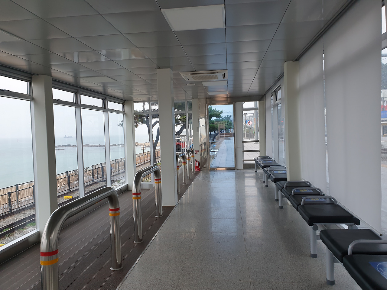 바다가 보이는 역사 안, 대합실은 멋진 카페다.