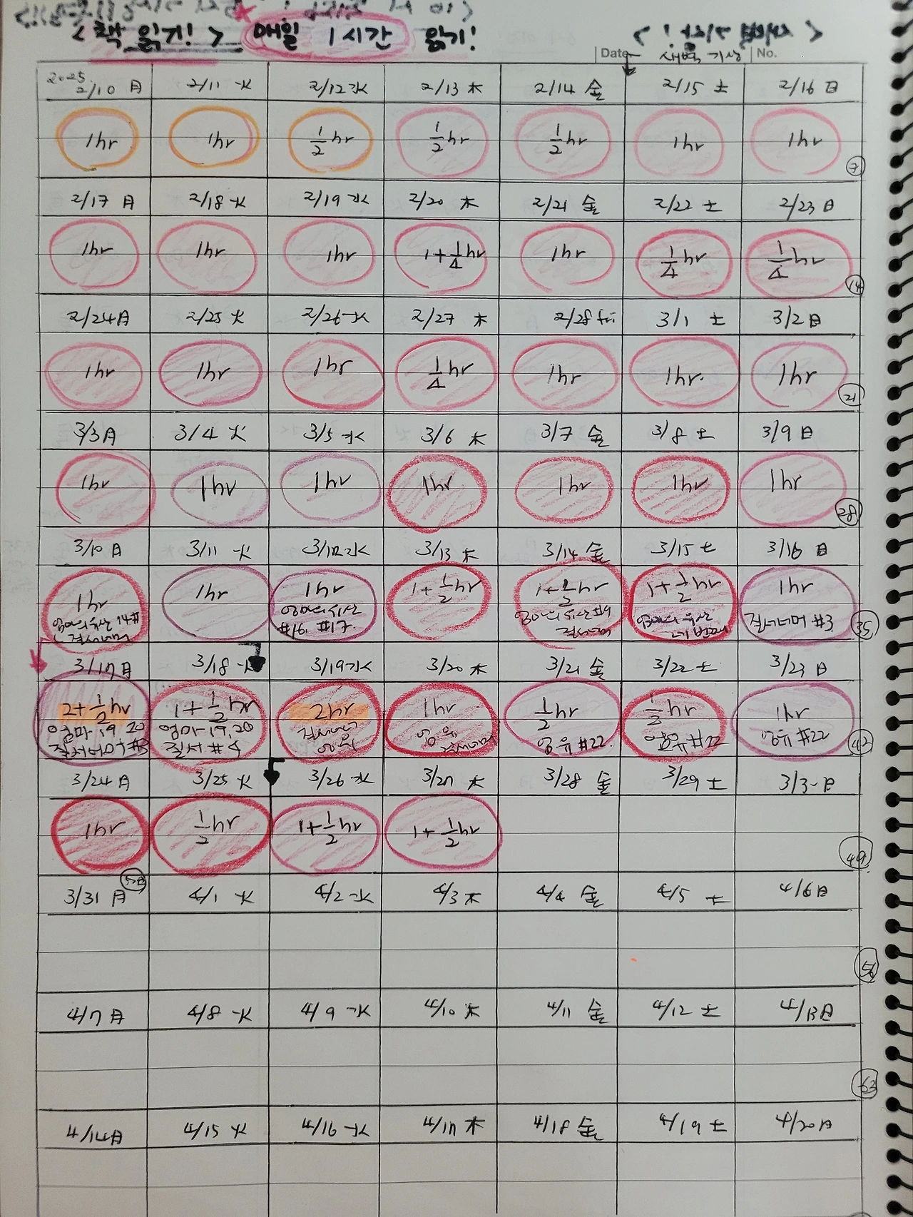 올해 2월부터 다시 시작한 매일 1시간이상 책읽기와 글쓰기