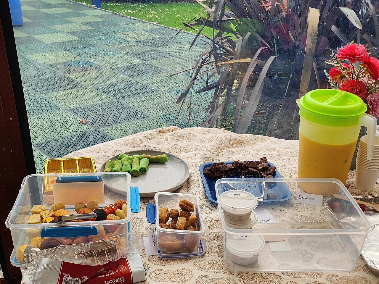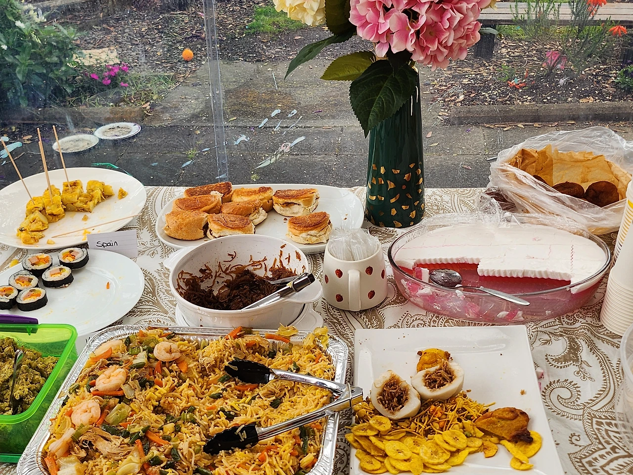 이어진 다과 시간. 각 나라의 음식들이 즐비해있지만, 음식을 가져오는 접시들에 김밥이 빠지지 않고 보였다. ‘밥이 좀 질게 된 게 영 신경이 쓰였지만 반응은 좋았다. 다들 맛있어했다.